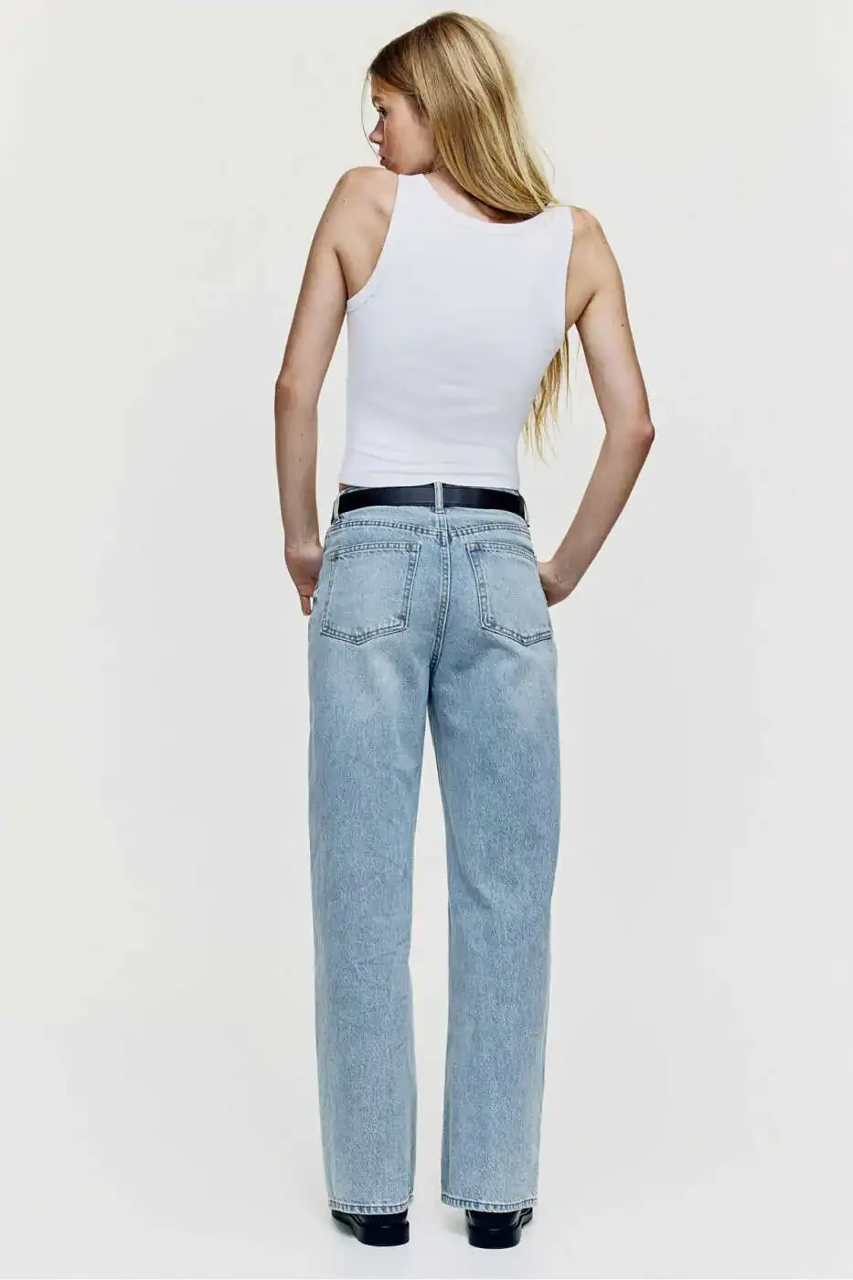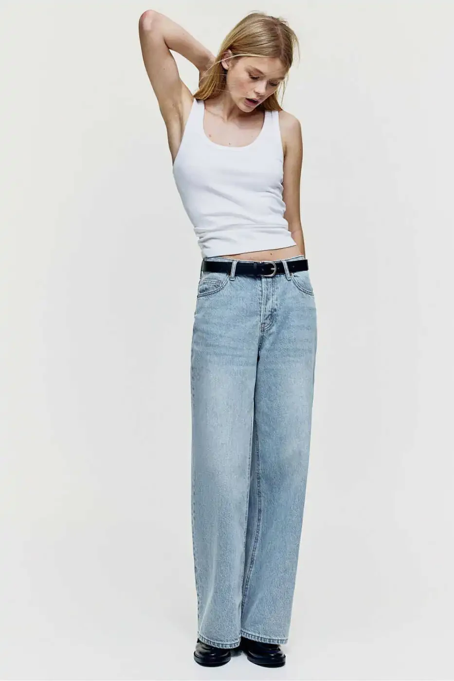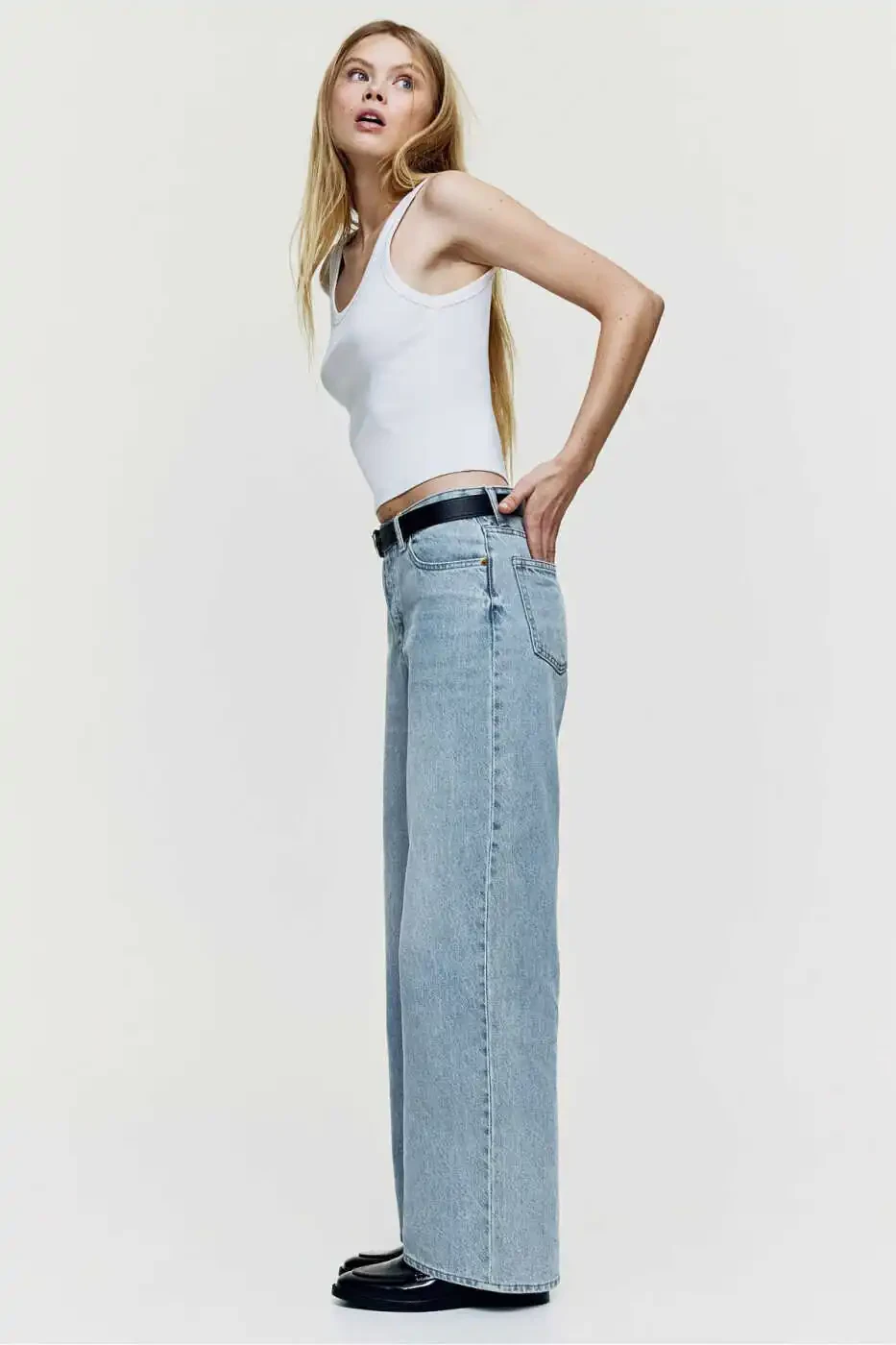 Wide Leg Jeans allows you to create a stylish look with different combinations. You can create a casual everyday style with a basic T-shirt or an eye-catching look at evening events with a chic blouse.