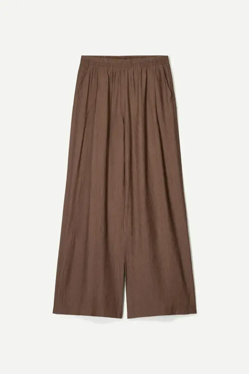An ideal option for those seeking a stylish and comfortable look, these wide-leg drawstring pants will become a staple in your wardrobe with their modern design and comfortable cut. These pants offer freedom of movement with their wide-leg cut, while the drawstring detail at the waist provides a perfect fit. Suitable for daily life, work, or special occasions, these pants can be combined with different tops to adapt to any environment. Thanks to its high-quality viscose and polyamide blend fabric, it has both a soft texture and long-lasting durability. The wide-leg cut makes your legs look longer while offering comfortable wear. The drawstrings at the waist ensure that the pants fit perfectly, beautifully accentuating your body lines. These pants are a perfect choice for modern women who seek both elegance and comfort. The white color can be easily combined with all kinds of tops and shoes, giving you a fresh look. You can also create a glamorous style by combining it with a stylish blouse and heels for special occasions. You can be sure that you will feel both comfortable and stylish with these pants. The fabric of the product is breathable and can be worn comfortably even in hot weather. Thanks to its durable fabric, it will keep its place in your wardrobe for many years. Appealing to all ages and styles with its modern and elegant design, these pants will become one of your favorite pieces in your wardrobe.