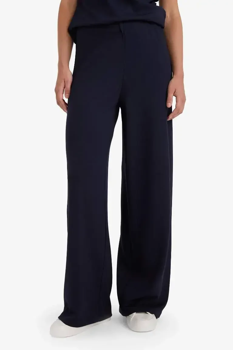 Flexible wide leg pajama pants that provide freedom of movement combine elegance and comfort. Thanks to its cotton pique fabric, it offers all-day comfort, while its wide leg cut creates a modern look. Ideal for those looking for a stylish alternative while relaxing at home or in daily activities.Product DescriptionWide Leg Pique Pants - Navy Blue have a design that perfectly suits today's fast and dynamic lifestyle, prioritizing both elegance and comfort. Thanks to its flexible structure, it allows you to be comfortable without restricting your freedom of movement throughout the day. This pants, which can easily adapt to any environment, whether you are relaxing at home, running errands or meeting up with friends, is a candidate to be an indispensable part of your wardrobe. The unique texture of cotton pique fabric offers a soft touch to your skin, while at the same time, its breathability prevents sweating and keeps you feeling fresh all day long. The noble and timeless stance of navy blue offers the possibility of easy combination with outerwear products of different colors and styles. The wide leg cut creates a modern look and allows you to move freely without restricting your movements. The elastic band at the waist ensures that the pants fit your body perfectly, while at the same time providing a comfortable wearing experience throughout the day. Wide Leg Pique Pants - Navy Blue stand out not only for their comfort but also for their elegance. Its simple and elegant design is suitable for both everyday and more special moments when combined with different accessories and shoes. Whether you create a comfortable combination with a sporty t-shirt and sneakers, or achieve a more formal look with a stylish blouse and heels, these pants successfully complete every style. This pant is not just a piece of clothing, but also a lifestyle statement. Wide Leg Pique Pants - Navy Blue, the choice of free-spirited women who take care of themselves and value both comfort and elegance, is a must-have in your wardrobe. It is an ideal choice for those who want to experience comfort and elegance together throughout the day. Thanks to its structure that can be worn in all seasons, it will be your favorite throughout the year, keeping you cool in summer and warm in winter. Enjoy both comfort and elegance with Wide Leg Pique Pants - Navy Blue!Product Features* Provides freedom of movement with its flexible structure.* Offers all-day comfort thanks to its cotton pique fabric.* Creates a modern look with its wide leg cut.* Suitable for use at home and in daily activities.* Offers a navy blue color option.Additional InformationThe model is wearing size S/36. The product content is 100% cotton. Machine washable at 30 degrees. Bleach is not recommended. Can be ironed on low heat.