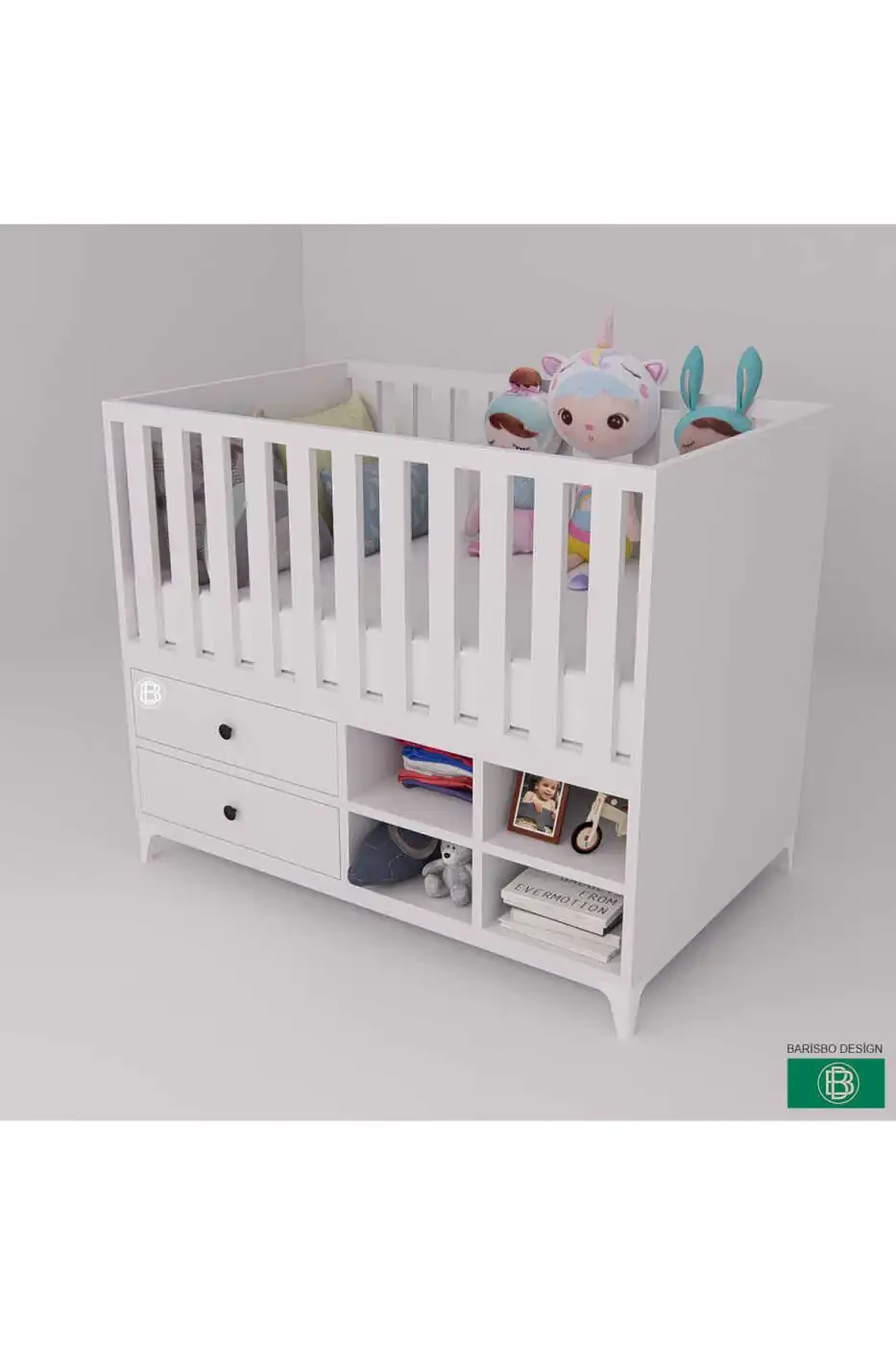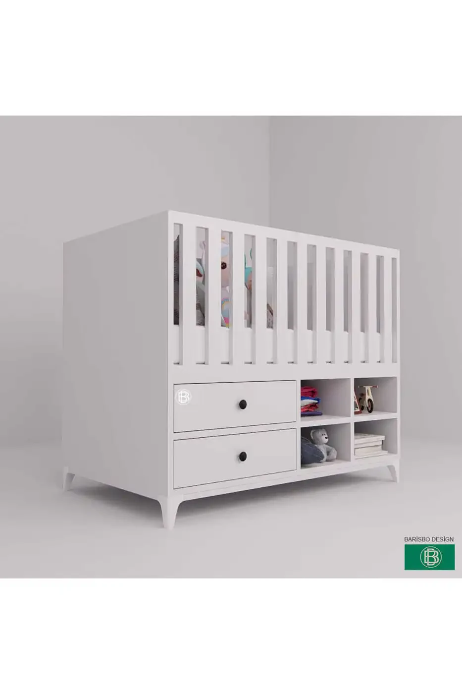 Presented to you by BARİSBO DESIGN, our Crib with Drawers and Shelves and Ample Storage Space will add both style and practicality to your baby's room with its modern design and ample storage space. It's being offered at a campaign price because fewer than 5 units are left in stock. In accordance with the Guarantee Certificate Regulation for Wooden and Metal Furniture, it is sent with a 2-year warranty certificate. Products offered by multiple sellers are ranked according to criteria such as price, seller rating, delivery status, promotions, whether or not shipping is free, fast delivery options, stock, and category information. You can order a maximum of 3 units of this product. Orders exceeding 3 units may be canceled by Trendyol. This limit does not apply to corporate orders. Our product offers a 15-day free return option. For detailed information, you can review the return conditions. With its drawer and shelf design, you can store your baby's clothes, toys, and other belongings in an organized and easily accessible way, making it extremely suitable for bedside use. While providing a stylish look, it also has enough storage space to meet your baby's needs. Its modern and elegant design suits all types of decoration styles and adds a warm and inviting atmosphere to your baby's room. Made from high-quality materials, our crib is carefully designed for your baby's safety and health. It has a durable and robust structure that you can use for many years. It will save you time by keeping your baby's belongings organized and making the room look tidier. With its practical and functional design, it is an ideal choice for both mothers and fathers. The spacious storage area will allow you to easily place the items your baby needs as they grow. The drawers and shelves inside will help you easily organize your belongings and keep everything at your fingertips. Order now and get the perfect storage solution for your baby.