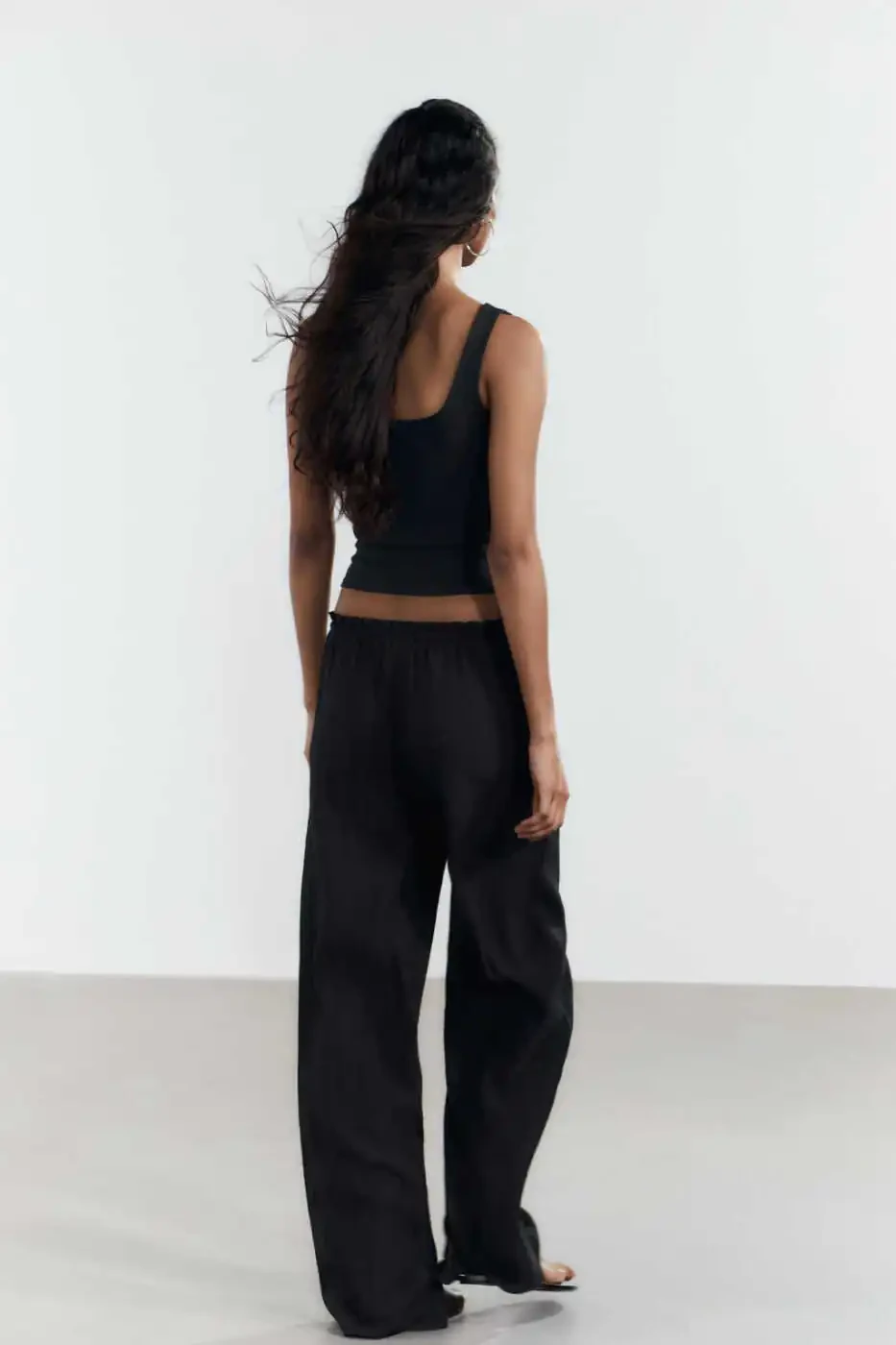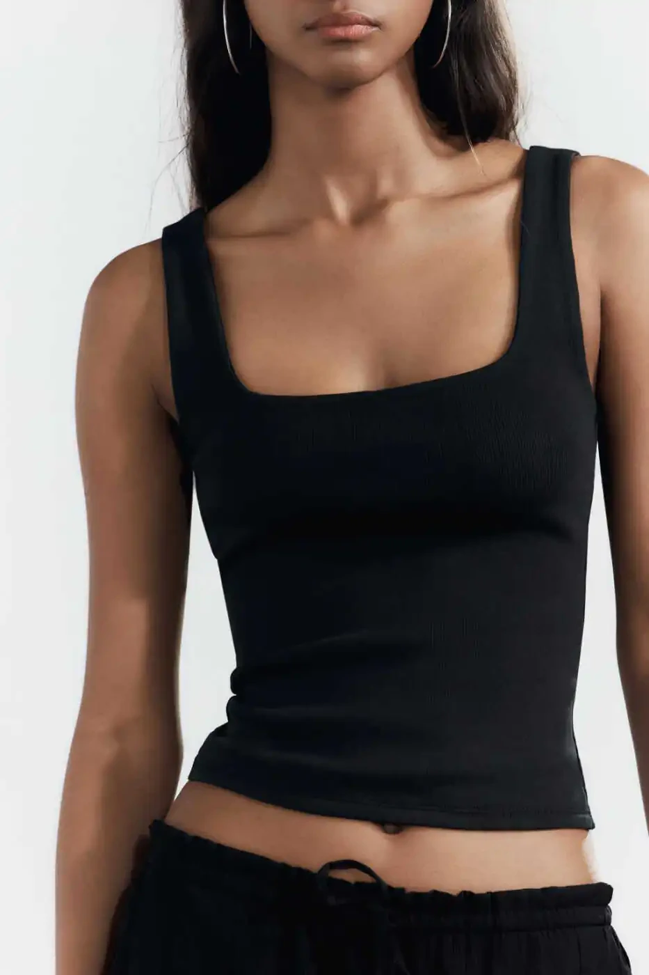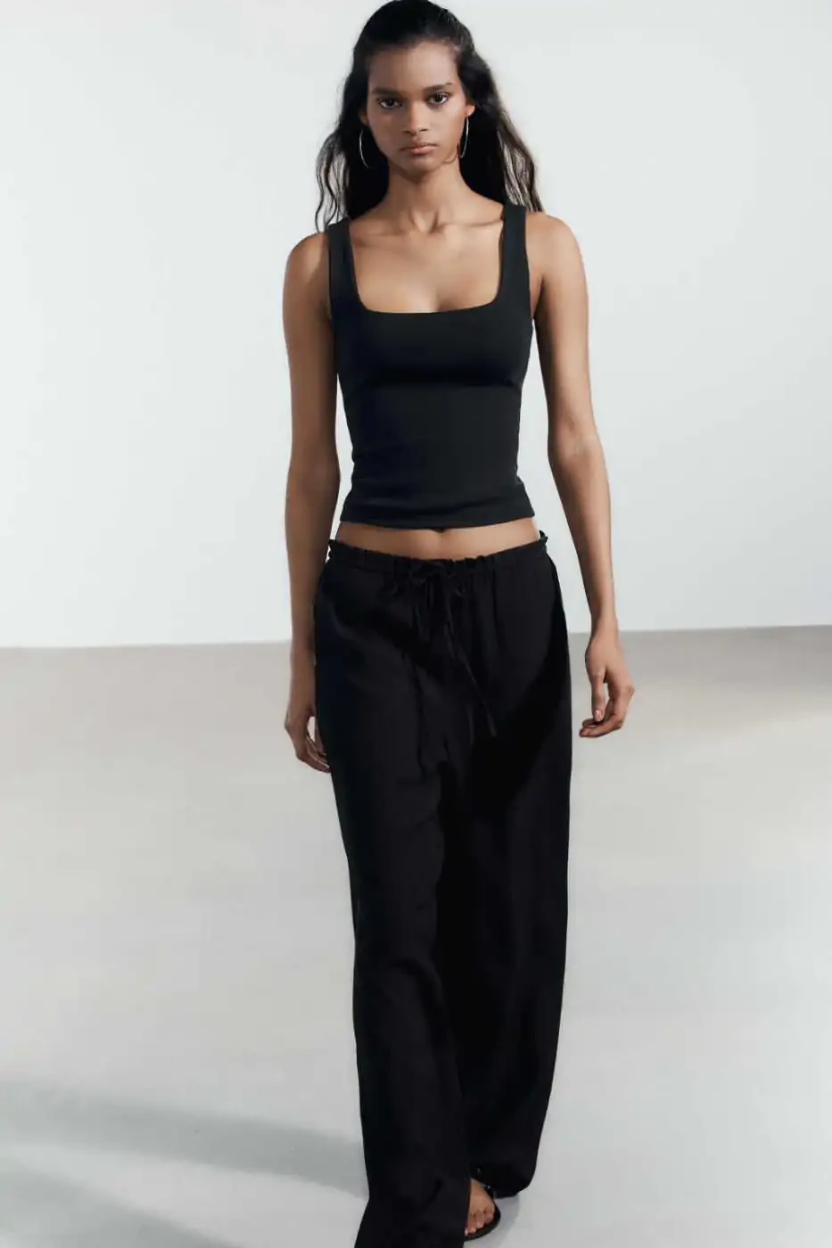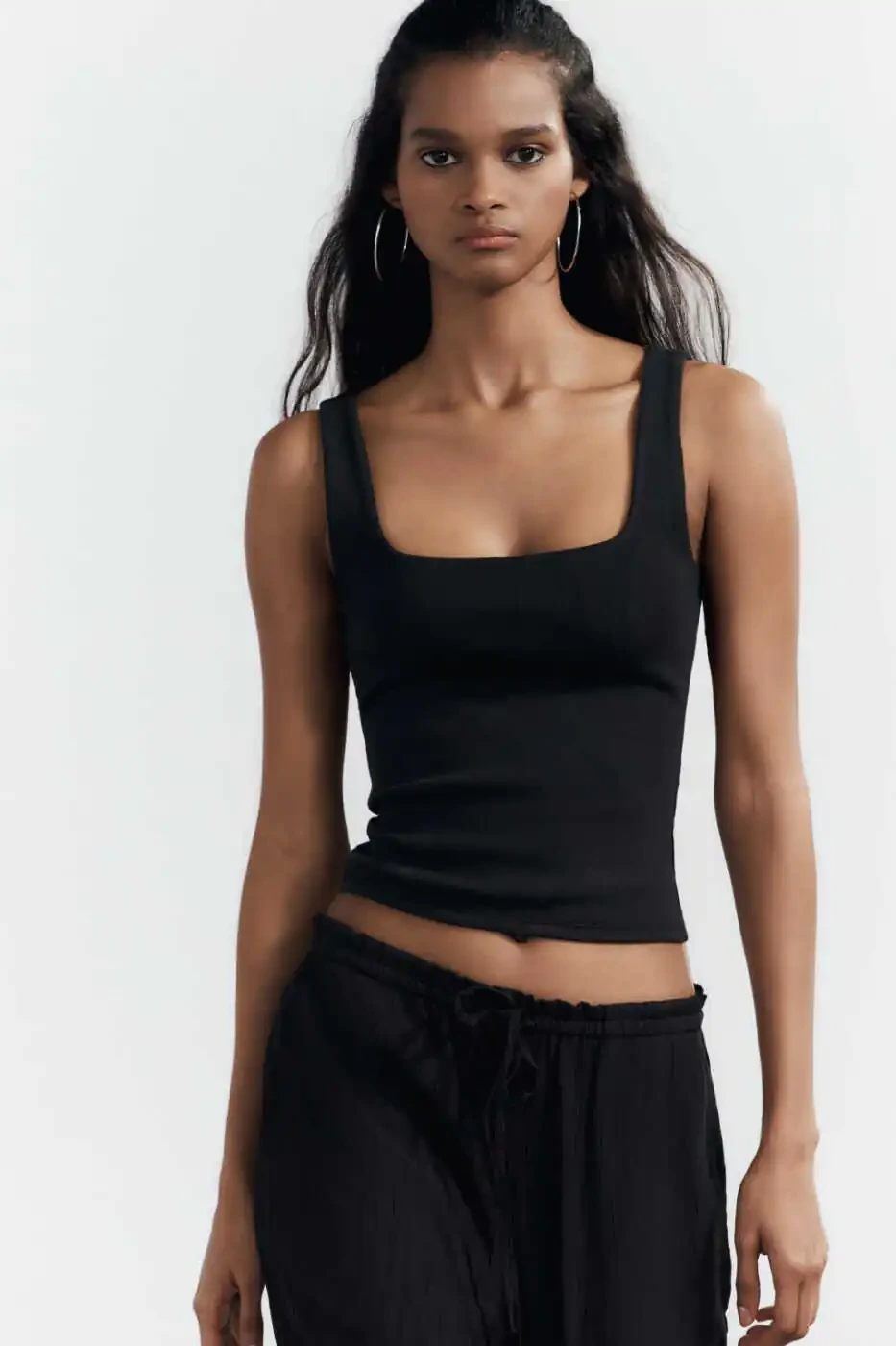 The WIDE STRAP T-SHIRT - Black, a cornerstone of your wardrobe, adds effortless elegance to your daily style, offering both grace and comfort. With its timeless black color and modern wide strap design, this t-shirt easily adapts to every style and occasion, making it a candidate to be one of the most preferred pieces in your wardrobe. It offers coolness and comfort on its own, especially on hot summer days, and completes your style when worn as a layer under outerwear pieces like jackets, cardigans, denim shirts, or blazers in cooler weather. Carefully knitted from high-quality cotton threads, its breathable and skin-friendly texture ensures maximum comfort throughout the day. This special fabric offers a soft touch on your skin, is hypoallergenic, and helps reduce perspiration. A touch of lycra added to the cotton increases the t-shirt's flexibility, does not restrict your freedom of movement, and helps it maintain its original shape even after being worn and washed repeatedly. The crew neck cut offers a modern and simple look, while the wide straps reduce the load on the shoulders, providing comfort that lasts all day. This thoughtful strap width also prevents bra straps from showing, offering a more aesthetic use. Its standard fit gently follows your body lines, it's neither too loose nor too tight, making it suitable for every body type. The elegance of classic black makes this t-shirt a versatile piece that you can comfortably use with your sportiest outfits as well as more classic or smart casual looks. You can create different styles by combining it with jeans, canvas shorts, pleated skirts, or even elegant trousers. Thanks to its minimalist design, it can be easily personalized with accessories like jewelry, scarves, or belts. The quality of the fabric and the sturdiness of the stitching guarantee that this t-shirt will be long-lasting and keep its place in your wardrobe for years. Despite being machine washed multiple times, there is no fading of color, wear on the fabric, or deformation of shape, making it a sustainable choice. Its ease of care is a big advantage in the pace of daily life. When you're undecided about choosing an outfit in the morning, this black t-shirt is always a reliable and stylish savior. Whether you spend a comfortable day at home, meet friends outside, or showcase a smart casual look at work, this t-shirt is ready to accompany you. You will always feel comfortable, stylish, and confident in it. With the right size choice, this t-shirt will feel like a second skin on you, it's not just a piece of clothing but also a reflection of your comfort and style. Combining quality, comfort, and timeless elegance, the WIDE STRAP T-SHIRT - Black is a useful and versatile classic piece that every woman should have in her wardrobe. Now add this unique comfort and elegance to your wardrobe.