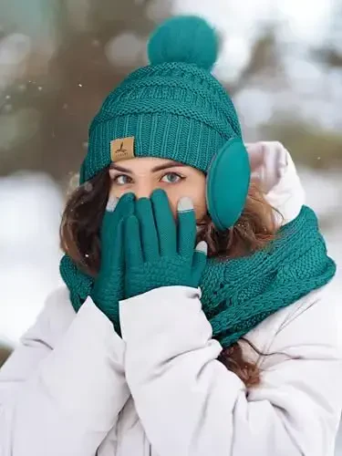 Brave the cold of winter with the Winter Hat Scarf Gloves and Ear Warmer set! This stylish and functional set keeps you warm from head to toe while highlighting your style. Whether for daily use or special events, the Winter Hat Scarf Gloves and Ear Warmer set will be an indispensable part of your winter wardrobe. This set consists of a pair of touchscreen-compatible gloves, a warm beanie, earmuffs to protect your ears from the cold, and a soft scarf. Each piece is carefully designed to keep you warm during the winter months and add color to your outfits. Made of comfortable acrylic material, this scarf and hat set has a structure that you can use comfortably all day long. It offers both comfort and warmth in cold weather. The specially designed knitted hat has excellent elasticity and fits most women's head sizes. This way, it keeps your head warm while providing comfortable use. The gloves are specially designed for easy use of your touchscreen devices. You can easily use your phone or tablet even while on the move. The Winter Hat Scarf Gloves and Ear Warmer set not only keeps you warm but also offers a stylish look. Thanks to its wide range of colors, you can choose the one that best suits your style and complete your winter combinations. Whether you prefer blue-green tones or choose more vibrant and eye-catching colors, you will always be stylish with this set. This winter scarf and glove set is ideal for various situations, from indoor events to outdoor activities. Whether you are attending a party, shopping, skiing or just taking your daily walk, this set will keep you warm and stylish. The Winter Hat Scarf Gloves and Ear Warmer set is not only a great gift option for yourself, but also for your loved ones. Especially in the winter months, if you want to keep your loved ones warm and give them a stylish gift, this set is for you. Both useful and stylish, this set will make your loved ones smile. Enjoy the winter with the Winter Hat Scarf Gloves and Ear Warmer set! Don't miss this set to stay warm and stylish in cold weather. With its wide range of colors, comfortable material and useful design, this set will be an indispensable part of your winter wardrobe. Order now and be prepared for winter!