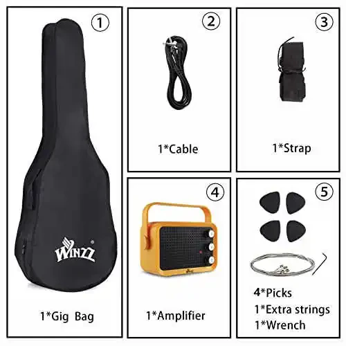 30 dyuymli WINZZ EGM100 bolalar uchun elektr gitara, 21 pardali va 19.69 dyuym oʻlchamdagi uzunligi bilan 4-10 yoshdagi oʻng qoʻl bolalar uchun juda mos keladi.Quyosh nuri singari yorqin va jozibali ranglar ijobiy energiya beradi.Yuqori porloq lak, mohir ishlov berish va nozik sayqallash sizga chalish paytida erkinlik hissi beradi.Gitara sifatli materiallardan yasalgan: mustahkam korpus, qayin grif taxtasi va koʻprigi, bitta rulonli magnit, ovoz balandligini boshqarish tugmasi, xrom qotishma koʻprigi va mexanizm boshi.Gig sumkasi, kabel, qoʻshimcha torlar, kayish, 4 ta mediator, kuchaytirgich (9V batareya kiritilmagan) va gaykani oʻz ichiga olgan ushbu mahsulotga barcha aksessuarlari bilan birga darhol chalishni boshlashingiz mumkin.