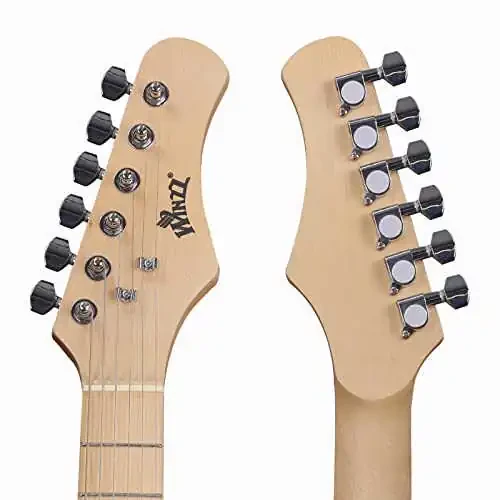 WINZZ EGM100 30 Inches Real Kids Electric Guitar with Beginner Kit, Right Handed, Blueburst, is a 30-inch electric guitar designed specifically for young musicians. Featuring 21 frets and a 19.69” scale length, this guitar is perfect for right-handed children ages 4-10.The guitar's vibrant colors and high-gloss finish will make you shine on stage. Constructed from quality materials, the WINZZ EGM100 features a solid body, maple fingerboard and bridge, single-coil pickup, volume control knob, and chrome alloy bridge and machine heads.This guitar comes with a complete starter kit including a gig bag, cable, extra strings, strap, 4 picks, an amplifier (9V battery not included), and a wrench to get you playing right away.Start your child's musical journey with the WINZZ EGM100 30 Inches Real Kids Electric Guitar Beginner Kit and inspire them to become the next rockstar!