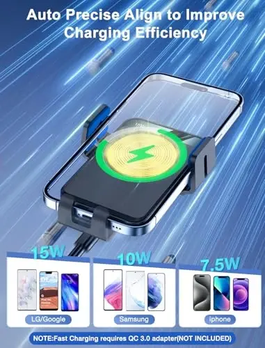 QC 3.0 car charger is required for 15W/10W/7.5W fast charging (not included in the box). It offers 5W standard wireless charging support for other wireless charging enabled phones (5V/2A adapter required). Remember to remove metal/magnetic objects, credit cards, or pop holders while charging.