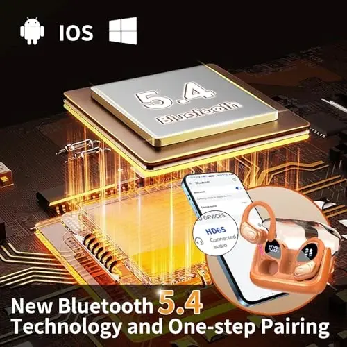 75 Hours Playtime and Dual LED Display: Running headphones provides up to 15 hours continuous using time on a single charge, portable charging case can charge the earbuds for 5-6 times, giving 75 hours of a total playtime. Whether on the road or in daily life, it will provide unparalleled convenience and smart experience. The dual LED display on earphones accurately display the remaining power of charging case and the charging progress of Wireless ear buds. Hi-Fi Deep Bass Stereo and Crystal Clear Calls: Bluetooth earphones 14.2mm large size speaker driver delivers powerful bass, mellow midrange, and clear treble, reproducing your music vividly to power your workout. Noise cancelling headphones are equipped with high quality ENC noise reduction mics to passively cancel 80% background noise so you and the caller can hear each other better and make crystal-clear calls with minimal background noise. Enjoy top-notch conversations wherever you are. Leading Bluetooth 5.4 Technology and Easy Pairing: Features with the advanced Bluetooth 5.4 chip technology, Aptkdoe HD65 wireless headphones support HFP A2DP HSP AVRCP, which provides instant pairing and stable transmission without interruptions, with a stable connection distance of up to 33ft. The moment you open the case, the earbuds instantly and effortlessly pair with your previously connected device, sparing you from the hassle of manual pairing and long connection times. Sensitive Touch Control and Wide Compatibility: Earbuds wireless bluetooth with a touch control that you can control music play/pause, previous/next track, volume+/-, answer/reject, end calls and enable voice assistance by touch area on earbuds. You can easily control it without operating the phone. You can listen to the music while running, working, reading, meeting, etc. Wireless earbuds bluetooth compatible with most bluetooth-enabled devices such as cellphones, tablets, laptop, ect. Ergonomic Sports Design and IPX7 Waterproof: The Wireless earbuds sport features ear hooks made of an innovative TPU (elastic) material that not only solves the problem of bluetooth earphones falling off when running, but is also comfortable to wear and anti-allergic. The earphones wireless bluetooth are equipped with nano-coated waterproof material, which can effectively prevent splash damage caused by sweat and raindrops, especially for jogging, gym, yoga and more sports.
