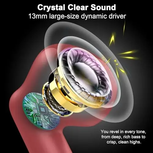 Wireless Earbuds, Bluetooth headphones, noise cancellation, IP7 waterproof, long battery life, fast charging, Bluetooth 5.4, ergonomic design, touch control, red headphones