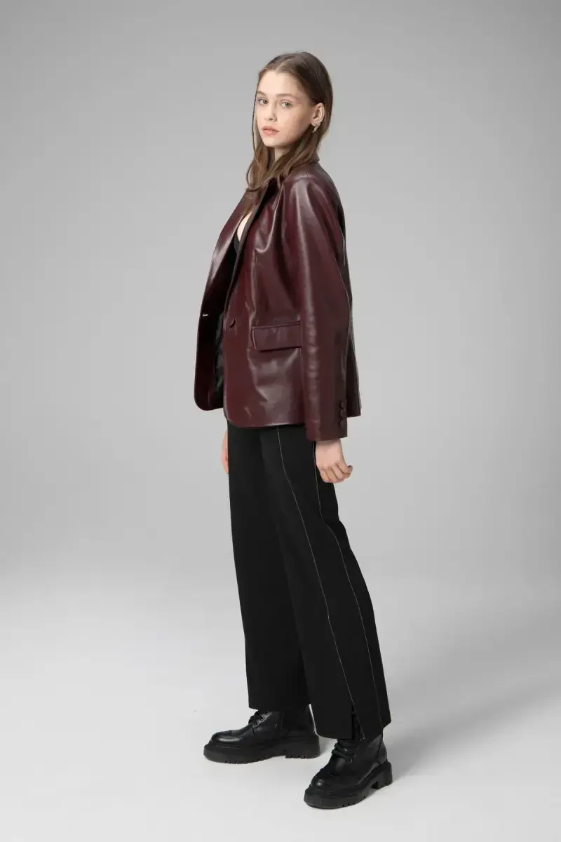 Combining elegance and grace, the Wm011 Real Leather Women's Blazer Jacket is a must-have for every woman's wardrobe. Made from soft and high-quality leather, this jacket offers superior comfort and style. Its elegant cuts and perfect fit will fit your body perfectly.
