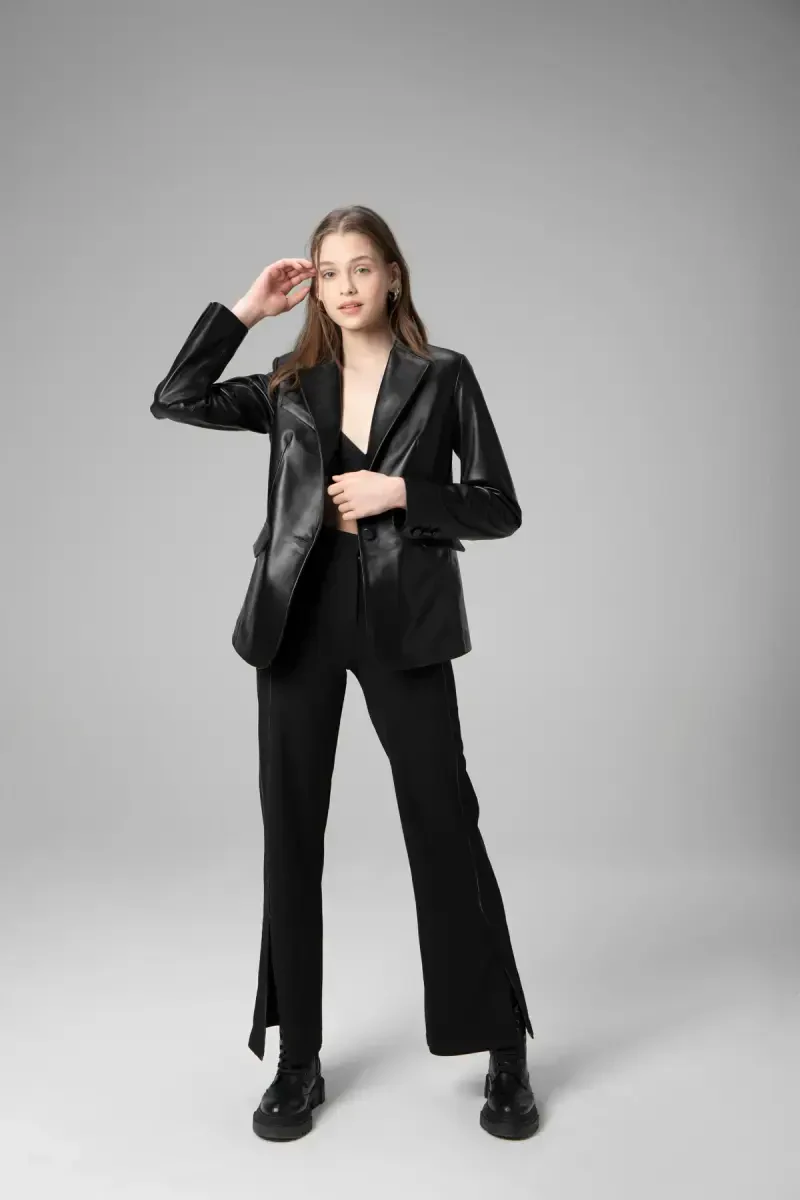 Кожаный блейзер - Женский черный блейзер - 100% кожаный шик