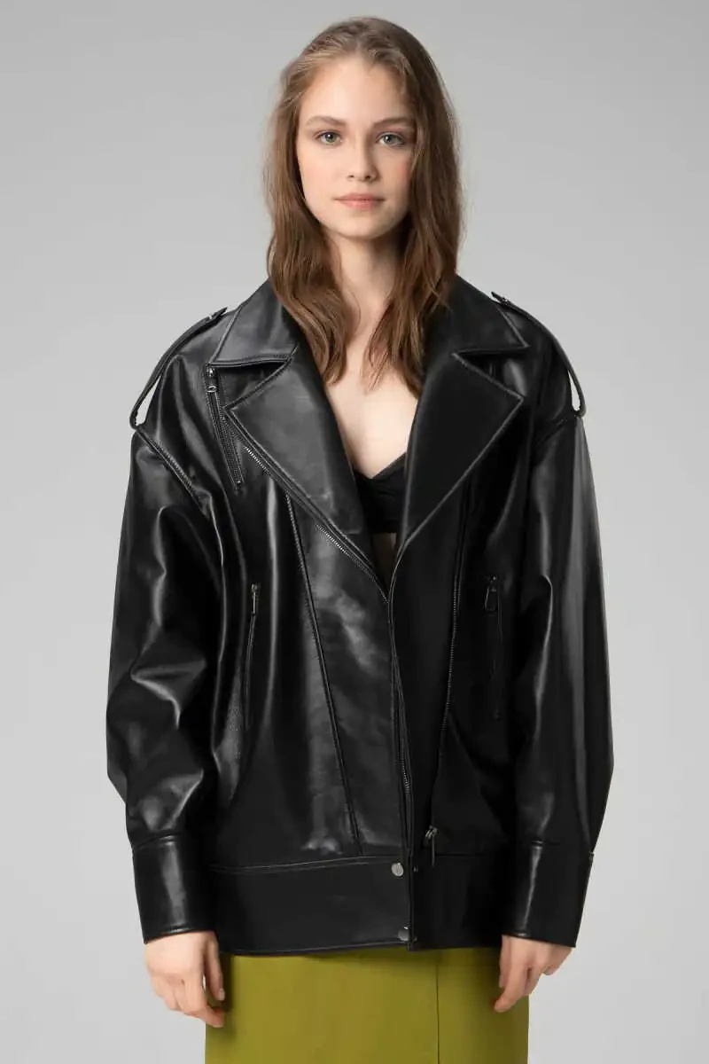 If you are a woman who values style and comfort, express your style with the Wm019 Oversize Biker Genuine Leather Women's Jacket!