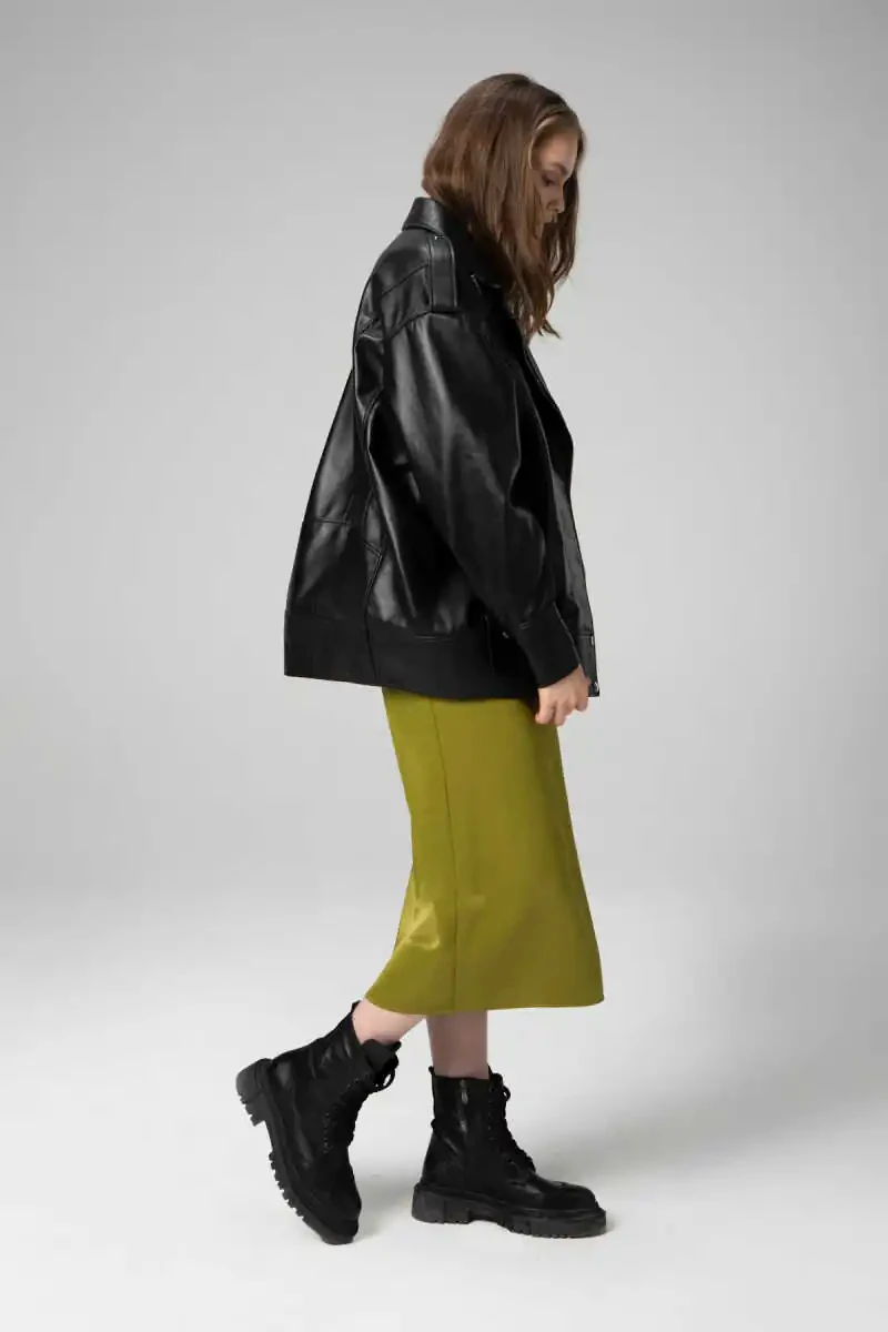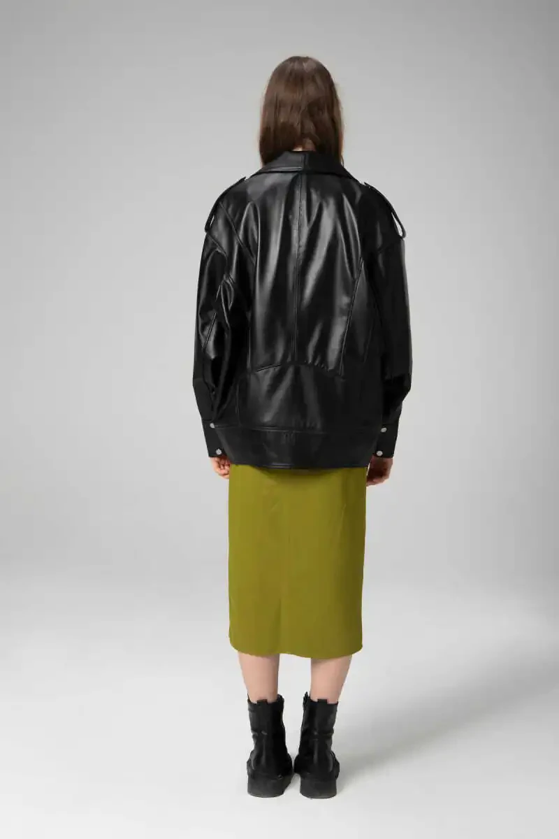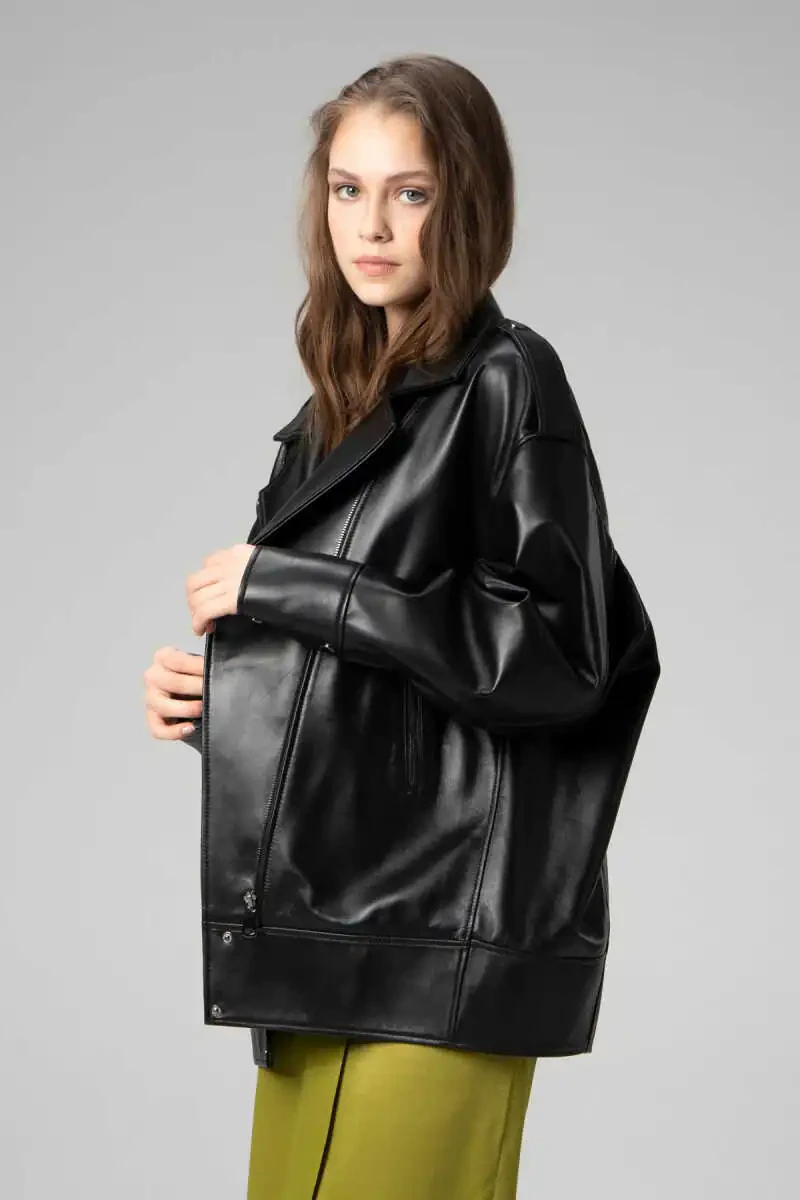 Если вы женщина, которая ценит стиль и комфорт, выразите свой стиль с помощью женской кожаной куртки в стиле байкер с оверсайзом Wm019!