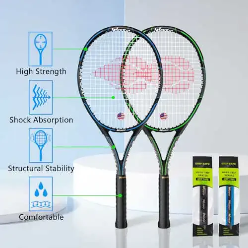 The package includes overgrips to extend the life of your racket and provide a better grip, a stylish tennis bag to carry your racket, vibration dampeners, and covers to protect your racket.