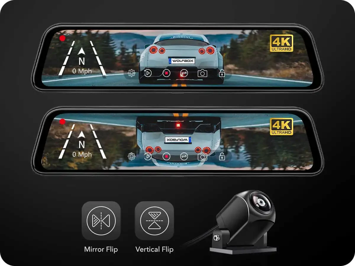 WolfBox Mirror Dash Cam: 4K Arkalı Görüş Aynası ile Tam Dokunmatik Ekran, WiFi ve GPS Özellikli Gelişmiş Araç Kamerası