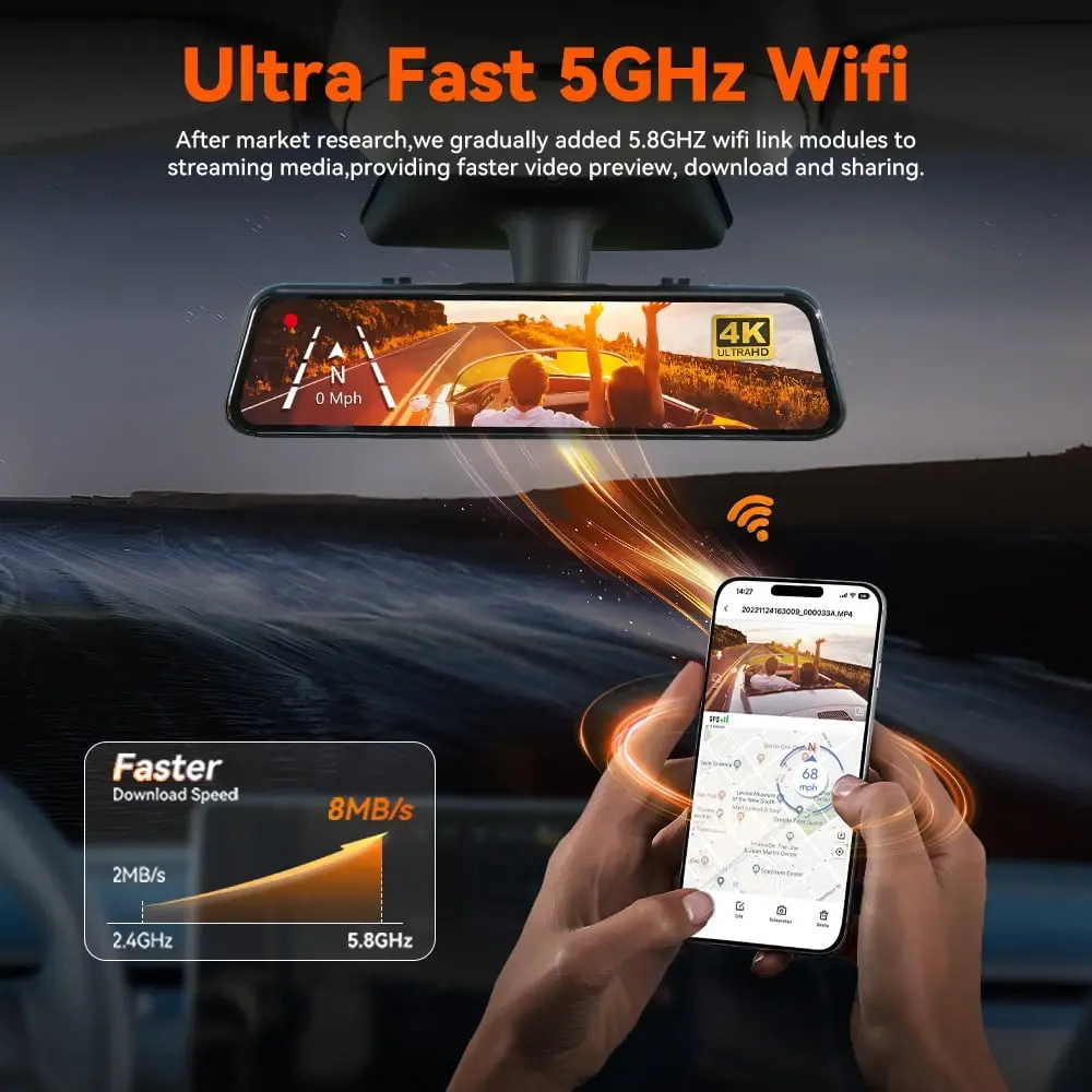 WolfBox Mirror Dash Cam: Улучшенная автомобильная камера с зеркалом заднего вида 4K, полным сенсорным экраном, Wi-Fi и GPS