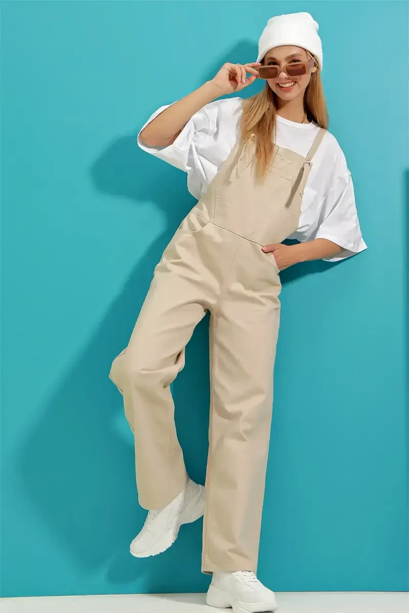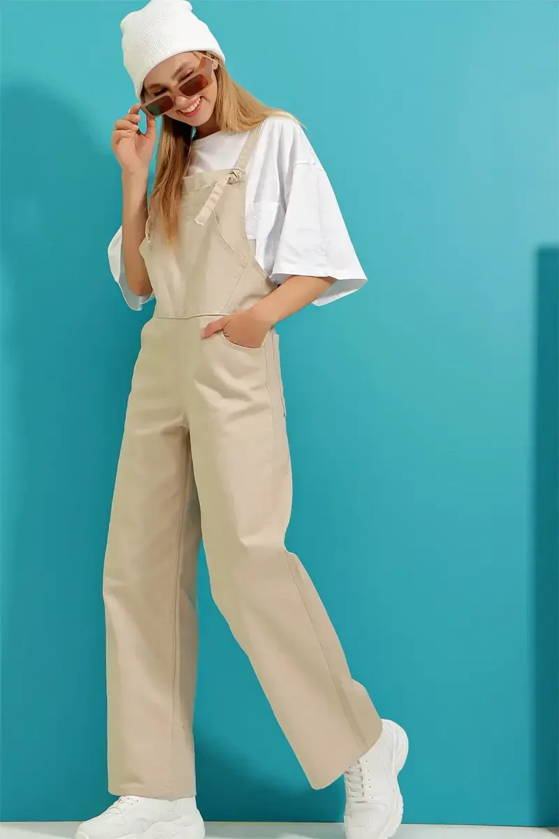 Made of cotton fabric. It is a kangaroo pocket model. It has adjustable straps. It has a comfortable cut.Product DescriptionWomen's Beige Kangaroo Pocket Denim Overalls ALC-X9072-BEJ is a stylish and comfortable option that is a candidate to be an indispensable part of your wardrobe. This special design overalls offers comfortable use all day long thanks to its cotton fabric, and easily adapts to all kinds of combinations with its beige color. The kangaroo pocket model offers both a functional detail and gives a baggy and modern look. Thanks to its adjustable straps, you can easily adjust your overalls according to your body measurements and achieve a perfect fit. Its comfortable cut highlights your elegance without restricting your freedom of movement. This overalls, which you can choose for daily use, weekend trips or meeting with friends, is a versatile piece that can adapt to different styles. You can create a casual style by completing it with a basic t-shirt and sneakers, or you can achieve a more feminine look with a stylish blouse and sandals. Women's Beige Kangaroo Pocket Denim Overalls ALC-X9072-BEJ is an ideal choice for women who want to be stylish and do not want to compromise on their comfort. With these overalls, you can both catch the trends and reflect your own unique style. This piece, which should definitely be in your closet, has a timeless design that you can use in every season. Enjoy being stylish and comfortable at any time of the day. With the warmth of beige and the modernity of the kangaroo pocket model, these overalls will add a different dimension to your style. Thanks to its adjustable straps and comfortable cut, it adapts to all body types and offers comfortable use. The breathable structure of the cotton fabric helps you stay cool even in hot weather, while its long-lasting structure will continue to be your wardrobe's favorite piece for many years. Express your style freely with Women's Beige Kangaroo Pocket Denim Overalls ALC-X9072-BEJ and attract attention in every environment.Product Features* Made of cotton fabric.* It is a kangaroo pocket model.* It has adjustable straps.* It has a comfortable cut.* It is beige in color.Additional InformationThe size on the model is S/36. Product content: 100% Cotton. It is recommended to wash according to the washing instructions.