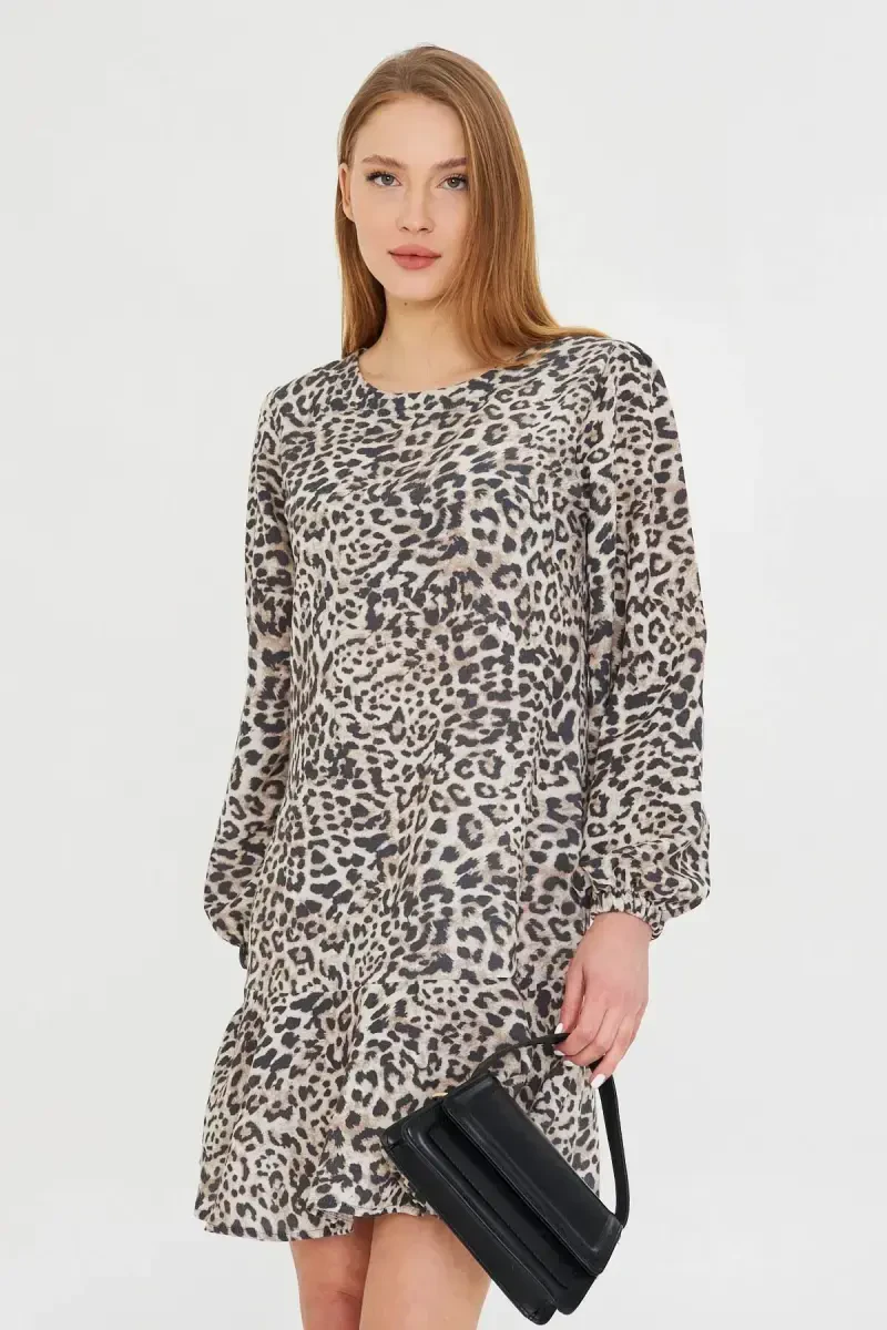 The Women's Beige Round Neck Skirt with Ruffled Sleeves and Gathering is a special design that combines elegance and comfort. This elegant dress offered by ARMONİKA is suitable for any environment with its beige color, while offering a feminine look with its round neck and ruffled sleeves. The ruffle detail on the skirt adds a lively and dynamic touch, while the sleeve gathers complete the elegance. Thanks to its 60% cotton and 40% polyester blend fabric, it offers comfortable use all day long. It is an ideal choice for both daily use and special occasions. The fit and cut on the model beautifully reveal your body lines. You can reflect your style by combining this dress, which will be one of the indispensable parts of your wardrobe, with different accessories. Product Length: 90cm.