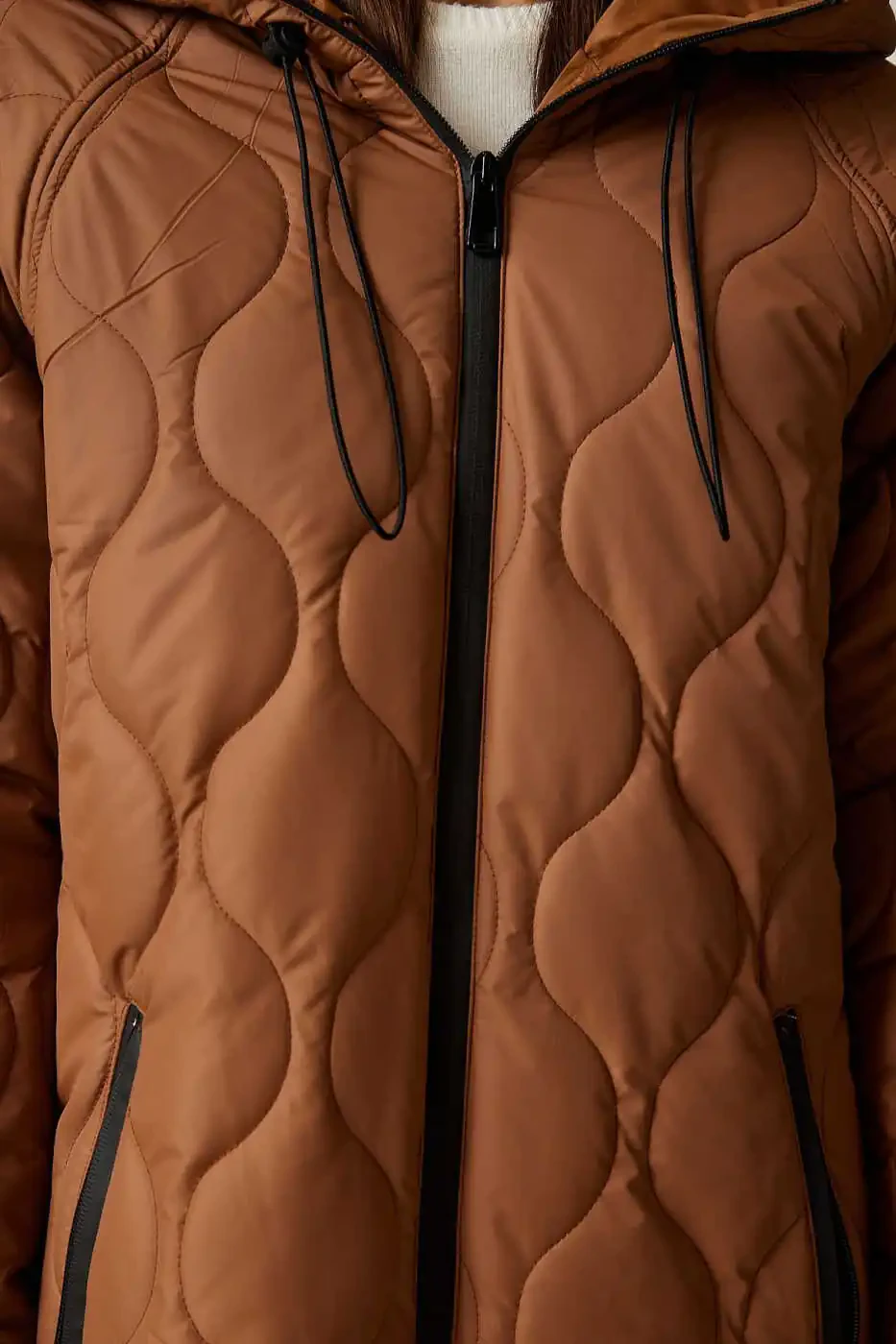 women's coat, brown coat, hooded coat, quilted coat, warm coat, pocketed coat, stylish coat, comfortable coat, winter coat, women's clothing