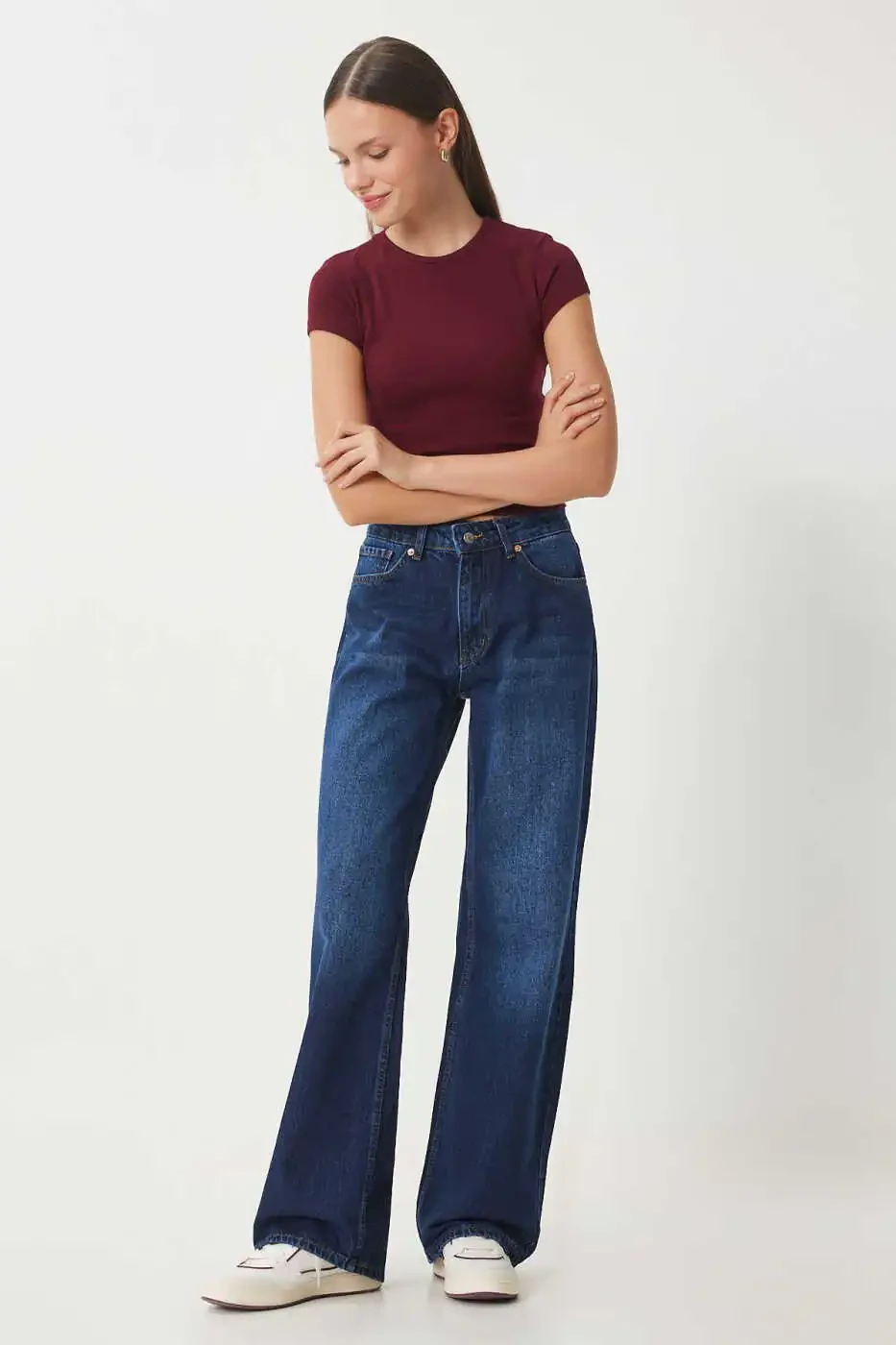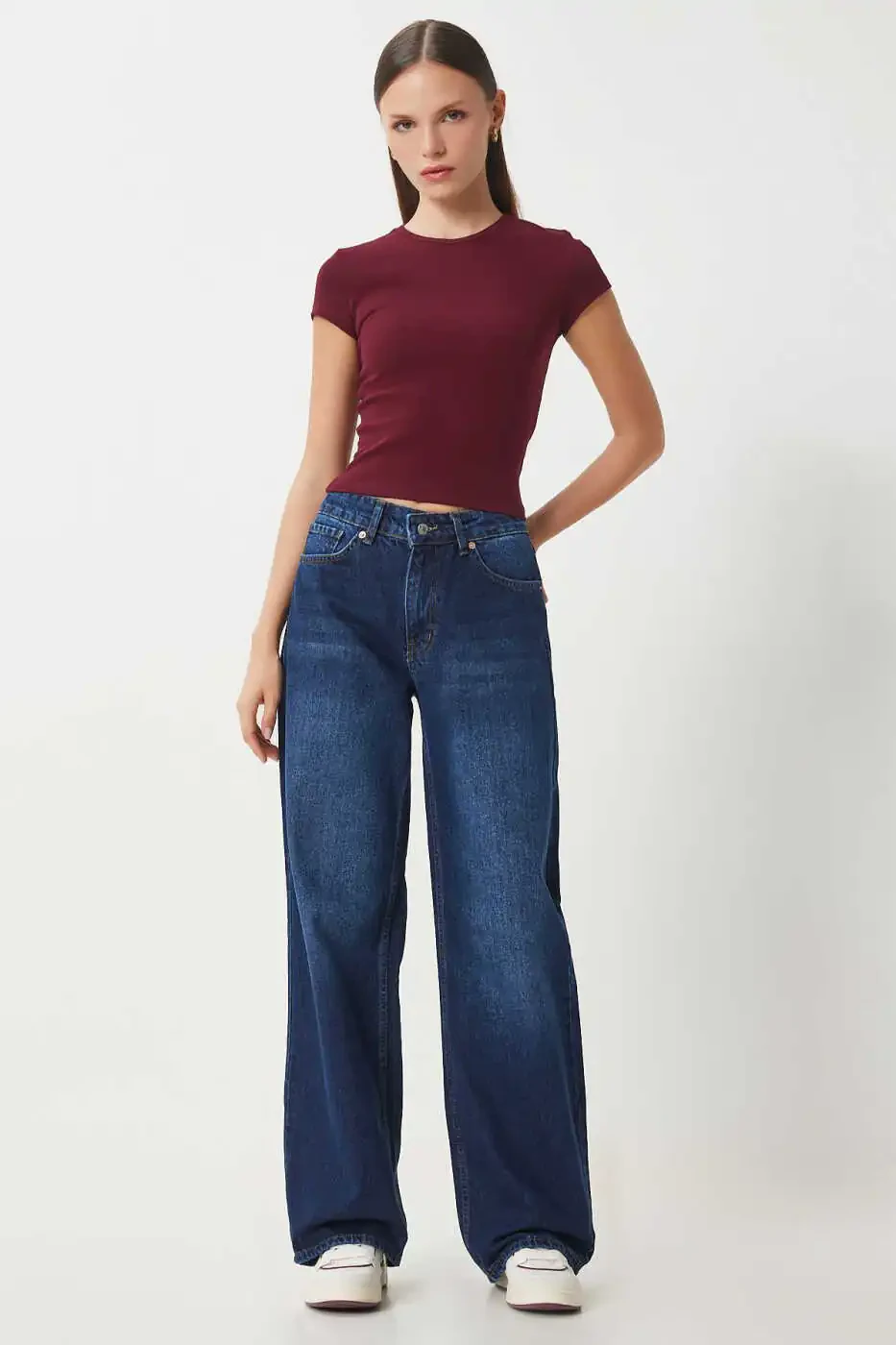 Women's Dark Blue Mid-Rise Wide Leg Loose Jeans UT00 is a candidate to be an indispensable part of your wardrobe! These specially designed jeans offer both a stylish and comfortable experience thanks to their high-quality denim fabric. The mid-rise cut allows you to move comfortably all day long, while the wide leg (loose fit) model creates a modern and trendy look. The dark blue color can be easily combined with all kinds of tops and shoes, allowing you to freely express your style. Whether you complete it with sneakers for a daily combination or with stylish heels for a special event, these jeans always ensure you stand out. The high-quality denim material offers long-lasting use, while the texture of the fabric is in harmony with your skin and provides all-day comfort. Women's Dark Blue Mid-Rise Wide Leg Loose Jeans UT00 is not only stylish but also a practical choice. Thanks to its pockets, you can carry your small belongings with you, so you can look stylish and meet your needs. These jeans are a versatile piece that can be worn in all seasons. You can achieve a cool and stylish look in summer with a light blouse, while you can be warm and stylish in winter with a thick sweater and boots. These specially designed jeans, which must be in your wardrobe, offer both comfort and elegance together. Discover Women's Dark Blue Mid-Rise Wide Leg Loose Jeans UT00 now to reflect your own style and make a difference in any environment! With these jeans, you will not only dress but also feel more confident and stylish. It is an ideal choice for women who want to make a difference in the fashion world and always stay up-to-date. Remember, style is not only about what you wear but also how you carry it, and these jeans always offer you the opportunity to carry it in the best way.