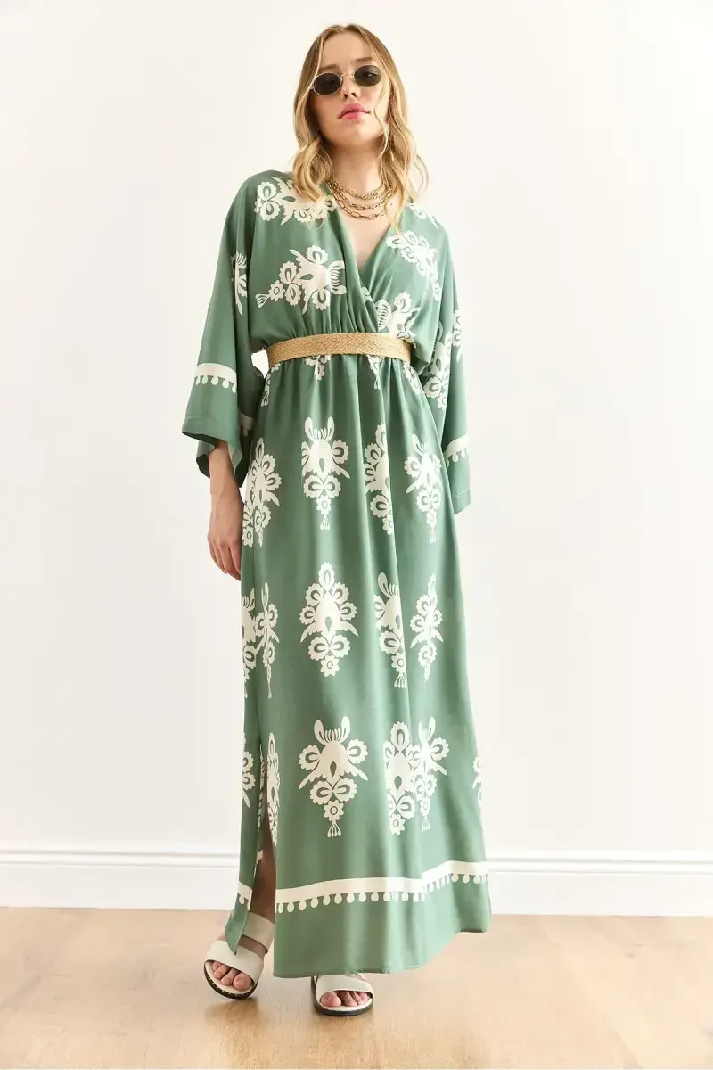 Women's French Green Wrap V-Neck Elastic Waist Maxi Dress is a design that combines elegance and comfort, and is a candidate to be an indispensable part of your wardrobe. This elegant dress combines the unique details of French style with a modern approach, allowing you to dazzle in any environment. The vibrancy of the green color and the feminine touch of the wrap V-neck add a sophisticated touch to the dress, while the elasticated waist design offers comfortable use all day long. This dress, which highlights elegance with its maxi length, can be evaluated in a wide range from special occasions to daily use. The quality of its fabric and the care in its stitching details guarantee that it is a piece that you can enjoy wearing for many years. Whether you create a stylish combination with high heels or a more comfortable style with sandals, this dress will help you reflect your style in the best way in any situation. This special design, which you should definitely have in your wardrobe, is an ideal choice for women who are looking for both elegance and comfort. The naturalness of the green color and the elegant details of the wrap V-neck make this dress a versatile piece that you can use in any season. Thanks to its elastic waist, it gently emphasizes your body lines without restricting your freedom of movement. This dress is a perfect option that will both complement your daily elegance and accompany you on your special moments. The light and breathable structure of the fabric offers comfortable use, especially in hot weather, while its maxi length allows you to achieve a striking look in any environment. With this dress, which will be one of the most loved pieces of your wardrobe, you can freely express your style and always feel good. The energy of the green color and the feminine touch of the wrap V-neck make this dress a must-have piece in every woman's wardrobe.Product DescriptionWomen's French Green Wrap V-Neck Elastic Waist Maxi Dress is a design that combines elegance and comfort, and is a candidate to be an indispensable part of your wardrobe. This elegant dress combines the unique details of French style with a modern approach, allowing you to dazzle in any environment. The vibrancy of the green color and the feminine touch of the wrap V-neck add a sophisticated touch to the dress, while the elasticated waist design offers comfortable use all day long. This dress, which highlights elegance with its maxi length, can be evaluated in a wide range from special occasions to daily use. The quality of its fabric and the care in its stitching details guarantee that it is a piece that you can enjoy wearing for many years. Whether you create a stylish combination with high heels or a more comfortable style with sandals, this dress will help you reflect your style in the best way in any situation. This special design, which you should definitely have in your wardrobe, is an ideal choice for women who are looking for both elegance and comfort. The naturalness of the green color and the elegant details of the wrap V-neck make this dress a versatile piece that you can use in any season. Thanks to its elastic waist, it gently emphasizes your body lines without restricting your freedom of movement. This dress is a perfect option that will both complement your daily elegance and accompany you on your special moments. The light and breathable structure of the fabric offers comfortable use, especially in hot weather, while its maxi length allows you to achieve a striking look in any environment. With this dress, which will be one of the most loved pieces of your wardrobe, you can freely express your style and always feel good. The energy of the green color and the feminine touch of the wrap V-neck make this dress a must-have piece in every woman's wardrobe.Product Features* French Style Design* Wrap V-Neck* Elastic Waist* Maxi Length* Green Color* Comfortable Fit* Light and Breathable Fabric* Versatile Use (Daily/Special Occasion)* Stylish and Comfortable* Gently Emphasizes Body Lines* Provides Freedom of Movement* High Quality Fabric and Stitching* Can be Used in Any SeasonAdditional InformationThe size on the model is S/36. Product content may vary depending on the fabric type. Please follow the washing instructions. The color of the product may vary depending on your screen settings.
