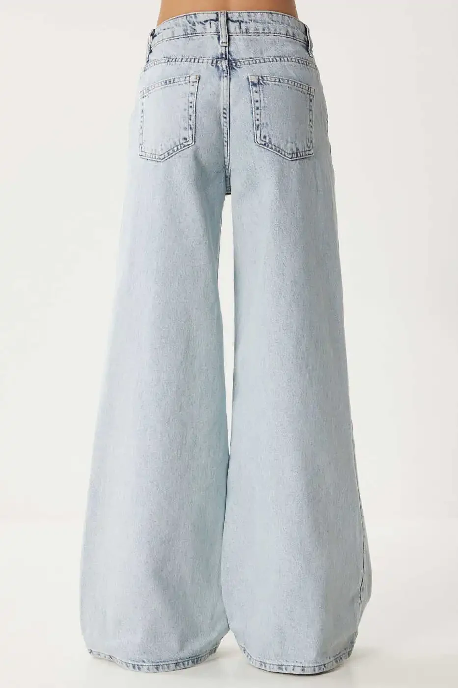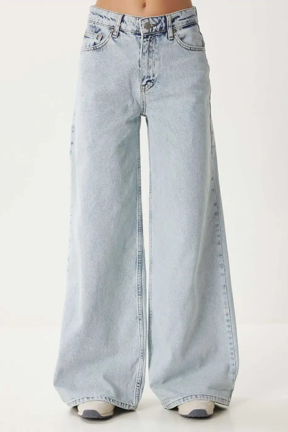 Meet the Women's Ice Blue Mid-Rise Wide Leg Jeans FN03413, a modern and comfortable essential for your wardrobe! This special design jean allows you to reflect your style in any environment by offering both elegance and comfort. Thanks to its high-quality 100% cotton fabric, it provides comfort all day long, while its non-stretch structure offers a long-lasting use experience. The mid-rise cut and wide leg model gently emphasize your body lines, creating a modern silhouette. The metal button and zipper closure add a stylish touch to the jeans, while the functional 5-pocket design provides ease of use. You can easily combine these jeans with different tops and shoe options, whether for daily combinations or special events, completing your style. The ice blue color will be the savior of your wardrobe with its suitability for all seasons. The model's height is 1.73 cm, chest size is 79 cm, waist size is 60 cm, and hip size is 90 cm. The product length is 112 cm, and the waist size is 37 cm. Colors may vary in studio shots due to light differences. These unique jeans are shipped by [page="merchant_info"]Trendyol[/page]. This product is offered for sale at a campaign price in limited quantities. Please note that a product may be sold by more than one seller. Sellers of products sold by more than one seller are listed according to price, seller rating, delivery status, promotions, whether the cargo is free, fast delivery option, stock, and category information. A maximum of 10 pieces can be ordered from this product. Orders over 10 units may be canceled by [page="merchant_info"]Trendyol[/page]. This limit does not apply to corporate orders. If you do not like it, you can benefit from a free return within 15 days. For detailed information, [page="return_conditions"]click[/page]. Order now and bring a new breath to your style!