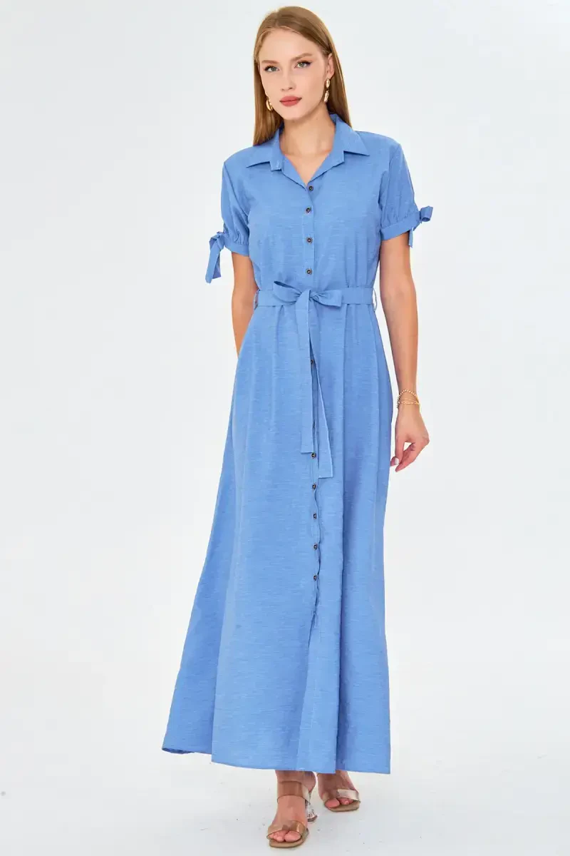 Armonika's Women's Light Blue Tie Sleeve Belted Shirt Dress, which combines elegance and comfort, is a candidate to be an indispensable part of your wardrobe. The ARM-23Y001004 model allows you to carry the freshness of summer with its light blue color, while highlighting your elegance with the tie details on the sleeves and the belt detail that emphasizes the waist. This shirt dress, which you can easily choose for daily use or a special occasion, will make you stand out in any environment with its modern design and comfortable fabric. Thanks to its high-quality viscose and polyester blend fabric, it allows you to move comfortably all day long, while also offering a stylish look. This special design offered with Armonika assurance will appeal to stylish women. Enjoy being both stylish and comfortable with this unique shirt dress. The product can be offered for sale by more than one seller. The sellers of products offered for sale by more than one seller are ranked according to the price they determine for the product, seller points, delivery statuses, promotions in the products, whether the cargo is free or not, whether the products can be delivered with fast delivery, and product stock and category information. Don't miss this special design shirt dress, add an Armonika touch to your style!