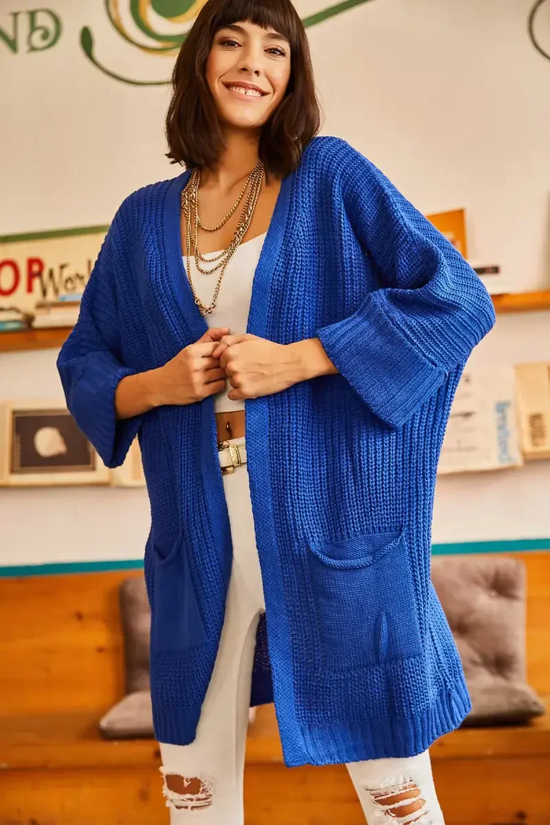 Meet the Women's Sax Blue Roll-Up Sleeve Pocket Slouchy Knit Cardigan that combines comfort and elegance! This cardigan is set to become an indispensable part of your wardrobe. Offering a perfect option for daily use, this knit cardigan will both keep you warm and allow you to reflect your style. Thanks to its loose fit, it does not restrict your freedom of movement, and with its sax blue color, you will achieve an energetic and lively look. Prioritizing functionality with its sleeve folding detail and useful pockets, this cardigan will easily adapt to any combination. Whether you create a sporty style with jeans or a stylish combination with your dresses, this cardigan will accompany you in any situation. Thanks to its high-quality knit material, it offers long-lasting use and does not wear out easily. You can easily use this cardigan in both spring and autumn months. You can put it on in cool weather to warm up and complete your style. You can choose this cardigan, especially in the office, on weekend trips or when meeting with friends, it is a comfortable and stylish option. The knit texture provides a soft touch to your skin, while the loose fit does not create a feeling of weight on you. This cardigan is not just a piece of clothing, but also a style statement. It allows you to create different styles by easily combining it with other pieces in your wardrobe. The sax blue color suits every skin tone, making you look more vibrant and energetic. The sleeve folding detail adds a different feel to the cardigan, while the pockets allow you to carry small items with you. This cardigan, which has no button or zipper detail, is easy to put on and take off and offers practical use. This knit cardigan, which is an ideal choice for women looking for elegance and comfort together, is a life-saving piece that you can use in any season. Discover this unique cardigan now and bring a new breath to your style!Product DescriptionMeet the Women's Sax Blue Roll-Up Sleeve Pocket Slouchy Knit Cardigan that combines comfort and elegance! This cardigan is set to become an indispensable part of your wardrobe. Offering a perfect option for daily use, this knit cardigan will both keep you warm and allow you to reflect your style. Thanks to its loose fit, it does not restrict your freedom of movement, and with its sax blue color, you will achieve an energetic and lively look. Prioritizing functionality with its sleeve folding detail and useful pockets, this cardigan will easily adapt to any combination. Whether you create a sporty style with jeans or a stylish combination with your dresses, this cardigan will accompany you in any situation. Thanks to its high-quality knit material, it offers long-lasting use and does not wear out easily. You can easily use this cardigan in both spring and autumn months. You can put it on in cool weather to warm up and complete your style. You can choose this cardigan, especially in the office, on weekend trips or when meeting with friends, it is a comfortable and stylish option. The knit texture provides a soft touch to your skin, while the loose fit does not create a feeling of weight on you. This cardigan is not just a piece of clothing, but also a style statement. It allows you to create different styles by easily combining it with other pieces in your wardrobe. The sax blue color suits every skin tone, making you look more vibrant and energetic. The sleeve folding detail adds a different feel to the cardigan, while the pockets allow you to carry small items with you. This cardigan, which has no button or zipper detail, is easy to put on and take off and offers practical use. This knit cardigan, which is an ideal choice for women looking for elegance and comfort together, is a life-saving piece that you can use in any season. Discover this unique cardigan now and bring a new breath to your style!Product Features* Color: Sax Blue* Model: Slouchy Knit Cardigan* Sleeve Detail: Roll-Up Sleeve* Pockets: With Pockets* Material: High Quality Knit* Usage Area: Daily Use, Office, Weekend Trips* Season: Spring, Autumn* Fit: Comfortable Fit* Style: Stylish and ComfortableAdditional InformationThe size on the model is S/36. It is important to follow the washing instructions on the label for the long life of our product. Colors may vary due to studio shots.