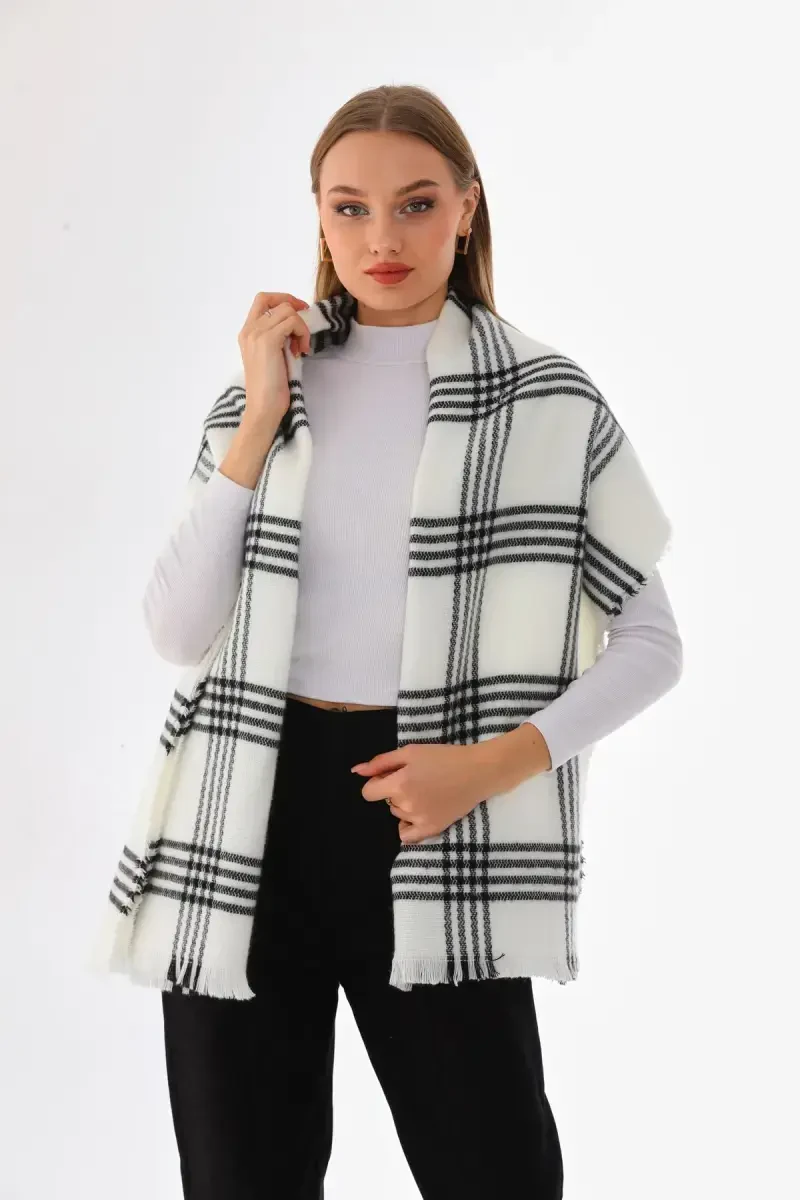 Plaid Patterned Acrylic Shawl - 70x180 cm - Soft and Comfortable