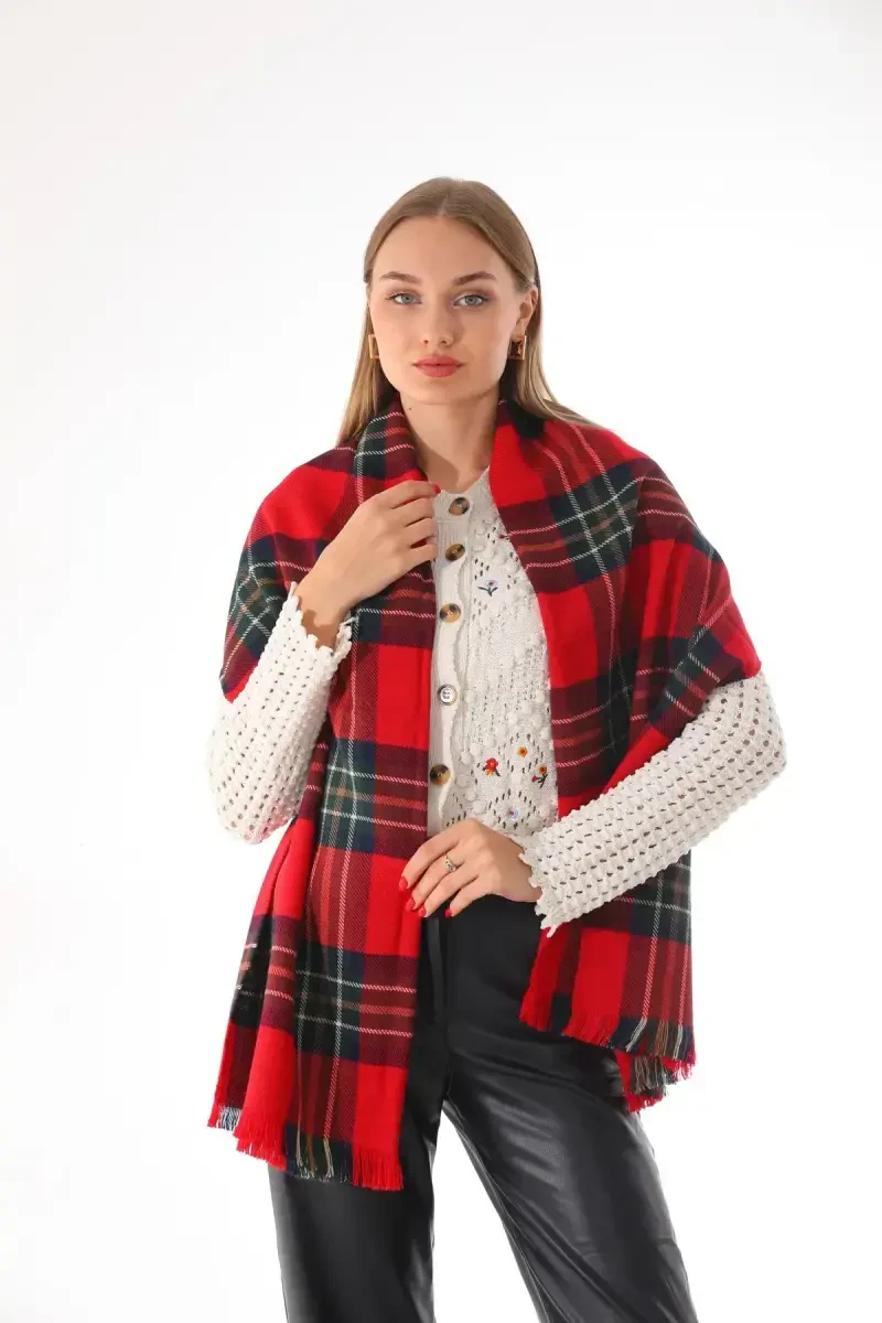 Stay stylish and warm in cold weather with this chic and comfortable Women's Soft Touch Red-Green Plaid Scarf from RitaGarcia. The red-dominant plaid pattern adds vibrancy and energy to your outfits, while the soft texture provides comfortable wear all day long. With a length of 180 cm and a width of 70 cm, you can experiment with different tying styles and easily achieve the look that suits you best. This scarf is an ideal accessory to complement your outfits for daily use as well as special occasions. It keeps you warm on cold winter days while allowing you to maintain your elegance. Whether you dress in a sporty or classic style, this scarf will easily match any combination. This special scarf, offered for sale on Trendyol, promises long-lasting use with its high-quality material and careful workmanship. Don't miss out on this limited-stock product and make it an indispensable part of your wardrobe. Please note that the colors in the image may vary depending on your device's screen properties, this is due to a technical difference and 100% compatibility is not guaranteed. Order this unique scarf now and enjoy the winter! Our product has plain color details and a soft texture.