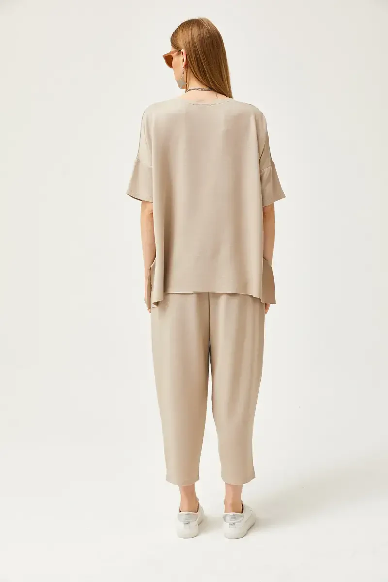 Designed for women seeking a stylish and elegant look, the Women's Stone Asymmetrical Blouse Soft Touch Top and Bottom Crystal Set TKM-19000269-Stone will make a difference in your special moments and everyday use. This unique set stands out with its asymmetrical blouse, soft-touch fabric, and eye-catching crystal details. Offering both comfort and elegance, this set is a candidate to be an indispensable part of your wardrobe.Product DescriptionThe Women's Stone Asymmetrical Blouse Soft Touch Top and Bottom Crystal Set TKM-19000269-Stone stands out with its modern design and elegant details. The asymmetrical blouse helps you create a different and unique style, while its soft-touch fabric offers comfortable use all day long. The bottom part of the set creates a stylish integrity by perfectly matching the blouse. Crystal details add sparkle and elegance to the set, providing a special touch. Whether you wear it to a special event or a daily activity, you will always be stylish and eye-catching with this set. The stone color of the set is compatible with all kinds of combinations and can be easily completed with different accessories. Thanks to its high-quality material and careful workmanship, it offers long-lasting use. This set is an ideal choice for women who want to have style and do not want to compromise on comfort. This special design set, which should definitely be in your wardrobe, will make you attract attention in every environment. Choose the Women's Stone Asymmetrical Blouse Soft Touch Top and Bottom Crystal Set TKM-19000269-Stone to feel special and highlight your elegance.Product Features* Asymmetrical blouse design* Soft-touch fabric* Eye-catching crystal details* Stylish and elegant appearance* Comfortable use* Set consisting of top and bottom pieces* Stone color* Suitable for different combinations* High-quality material* Careful workmanshipAdditional InformationIt is important to follow the specified washing instructions for the product to have a long life. Please read the instructions on the product label carefully. Accessories and shoes are used for combination purposes and are not included in the product content.
