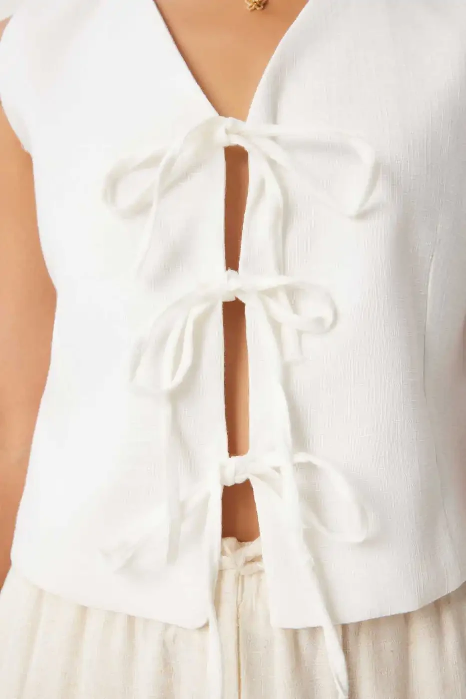 Combining elegance and style, the Women's White Bow Linen Vest GP00010 will become an indispensable part of your wardrobe. This vest, which you can easily wear both in everyday life and at special events, is made of high-quality linen fabric and its breathable structure keeps you cool in the summer months. The elegant white bow detail adds a romantic and feminine touch to the vest. With its regular fit, it hugs your body without ever being uncomfortable. Its standard length easily adapts to different body types and appeals to a wide audience with its design that appeals to all age groups. The V-neck detail offers both style and comfort. With its plain and simple cut, the vest acquires a timeless look, easily adapting to various combinations to help you complete your style. Order now from Trendyol and experience the comfort and style of this chic vest. Limited stock available, hurry!