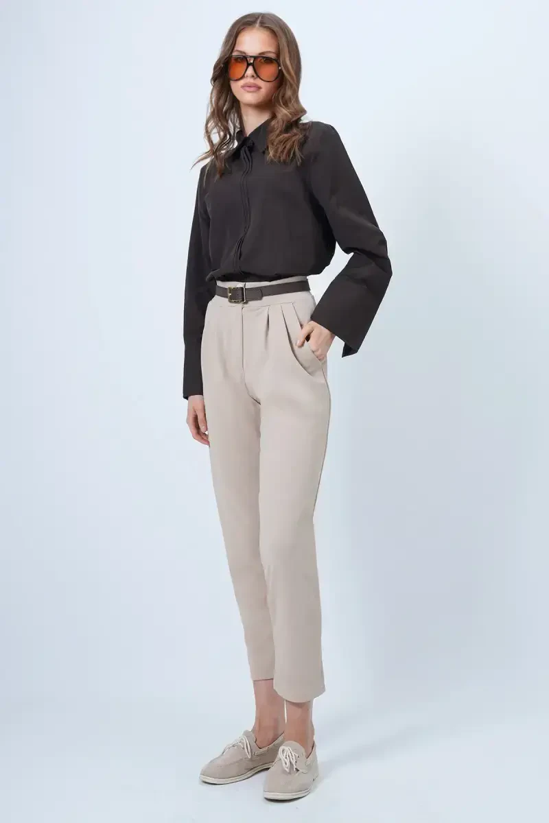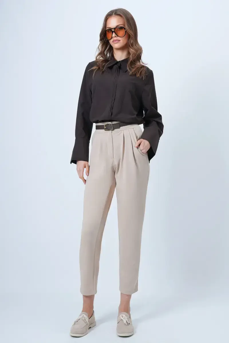 Women's Beige High Waist Carrot Pants ALC-X11148-BEJ is a timeless piece that should be in the wardrobe of a modern woman. The high-waisted design gently emphasizes your silhouette, offering both a stylish and comfortable use. The carrot cut makes the leg length look longer and does not restrict your freedom of movement throughout the day. The neutral tone of beige color can be easily combined with tops in different colors and patterns, thus offering a versatile use. This trousers, which you can wear in the office, on daily outings, or at special occasions, allows you to show off your elegance in any environment. Thanks to its high-quality fabric, it maintains its shape for a long time and is resistant to wear. This trousers, offered with the code ALC-X11148-BEJ, has a design that will appeal to stylish women. This trousers is not just a piece of clothing, but also a form of expression. It allows you to reflect your own style, while always keeping you up-to-date and trendy. It easily adapts to other pieces in your wardrobe, allowing you to create different combinations. The timelessness of beige color makes this trousers an investment piece that you can wear for years. The high-waisted detail is a perfect match with many top wear options, from crop tops to shirts. You can easily combine it with your accessories and highlight your personal style. In short, Women's Beige High Waist Carrot Pants ALC-X11148-BEJ is a candidate to be one of the staples of your wardrobe, combining elegance, comfort and versatility.