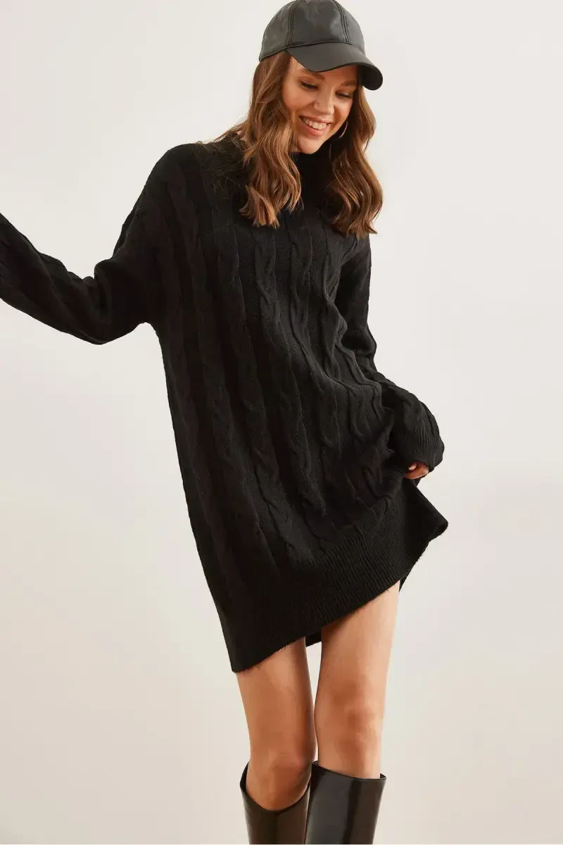 Experience elegance and comfort together with the Women's Black Braided Knit Tunic Dress ELB-19002. This specially designed tunic dress keeps you warm thanks to its knit texture and offers an elegant look. Braided details add movement and originality to the dress, while the noble tone of black allows you to stand out in any environment. Thanks to its standard size, this tunic dress, which easily adapts to different body types, can be easily preferred in daily use as well as special occasions. This piece, which will accompany you in every moment, from office elegance to weekend comfort, will be an indispensable part of your wardrobe. Thanks to the model's stance and stylish cut, you can combine both modern and classic styles and reflect your own style. This tunic dress, which allows you to move comfortably all day long thanks to its soft texture, is both a stylish and useful option. You can create different looks by combining it with boots in winter and flats or sneakers in spring. It offers long-lasting and durable use thanks to its 70% acrylic and 30% polyester blend. Let your style speak in every season with the timeless elegance of black and the warmth of tricot. Don't miss this special design tunic dress offered with OLaLook Official assurance. You can highlight your style by combining it with different accessories and feel special in any environment. Experience both comfort and elegance together with this tunic dress, which is a candidate to be the most loved piece of your wardrobe. This special design, which stands out with its braided details and tricot texture, is an ideal option for both daily use and special occasions. This tunic dress, which prioritizes your elegance and comfort, will be an indispensable part of your wardrobe. Order now and experience OLaLook Official quality.