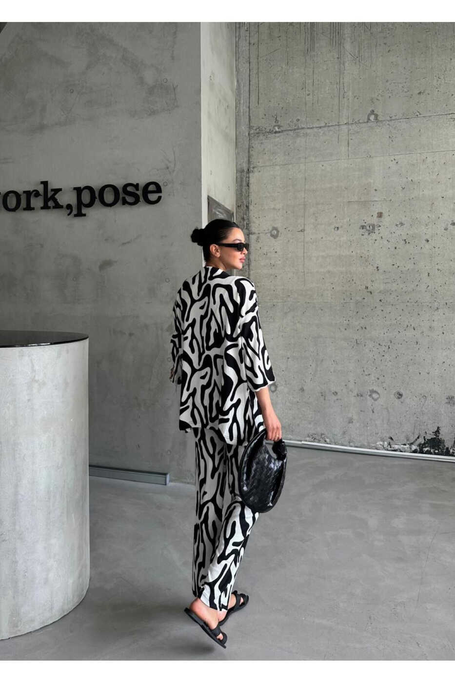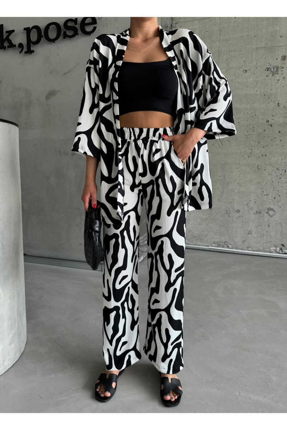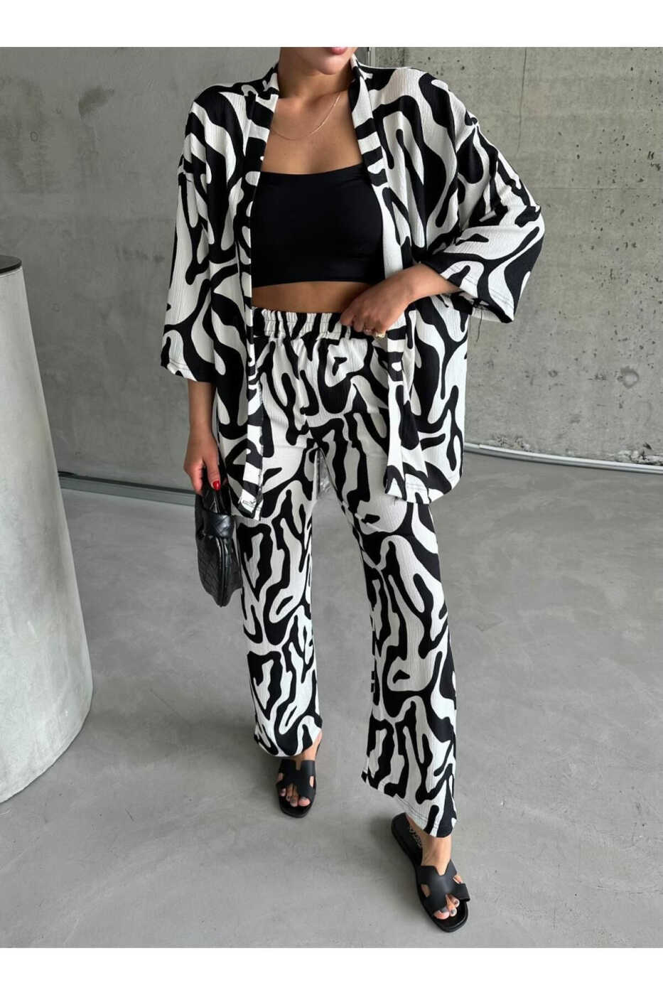 The Women's BLACK & WHITE ZEBRA Low Shoulder LONG PANTS Suit is a versatile option that you can use in all kinds of events, from everyday life to special invitations. You can create a casual look by combining it with sneakers and a stylish bag during the day, or you can create a dazzling style by complementing it with high heels and elegant accessories in the evenings.