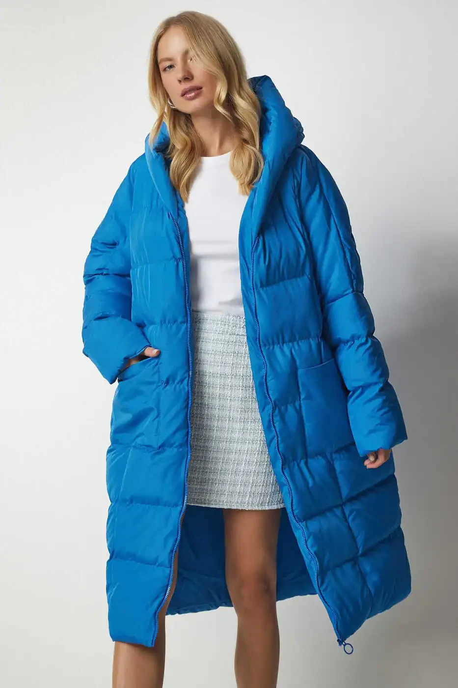 Women's Sky Blue Hooded Oversize Long Puffer Coat is an excellent option that prioritizes your style and comfort in cold weather. This stylish and functional coat stands out with its modern design and superior insulation properties. While its oversize cut does not restrict your freedom of movement, its long length keeps your body warm from head to toe. The eye-catching sky blue color adds vibrancy to your winter wardrobe and allows you to create different combinations. The hooded design provides extra protection against unexpected weather conditions, while adjustable cords offer you a personalized fit. High-quality puffer filling provides excellent thermal insulation despite being lightweight. The zippered and snap front closure system prevents cold air from entering, while the side pockets are ideal for warming your hands or carrying small items. This coat is made of durable materials and is designed for long-lasting use. Suitable for both daily use and special occasions, this coat will be an indispensable part of your wardrobe. It is an ideal choice for women who want to look stylish and stay warm on cold winter days. The oversize cut combines comfort and a modern look, while the long length keeps you protected from the cold. The sky blue color easily matches any outfit and completes your style. The hooded design protects your head in rainy and windy weather, while adjustable cords provide a personalized fit. The puffer filling provides high thermal insulation despite being lightweight, keeping you warm. The zippered and snap front closure system prevents cold air from entering and allows you to put it on and take it off easily. Side pockets are ideal for warming your hands or carrying small items such as your phone and keys. Made of durable materials, this coat will accompany you for many years. Whether you are strolling around the city or going for a nature walk, this coat will always accompany you. This coat is not just a garment, but also a style statement. You can enjoy cold weather while feeling safe and stylish. This coat will be one of the most loved pieces in your wardrobe and will always accompany you. Offering style, comfort and functionality together, this coat will be indispensable in winter months.