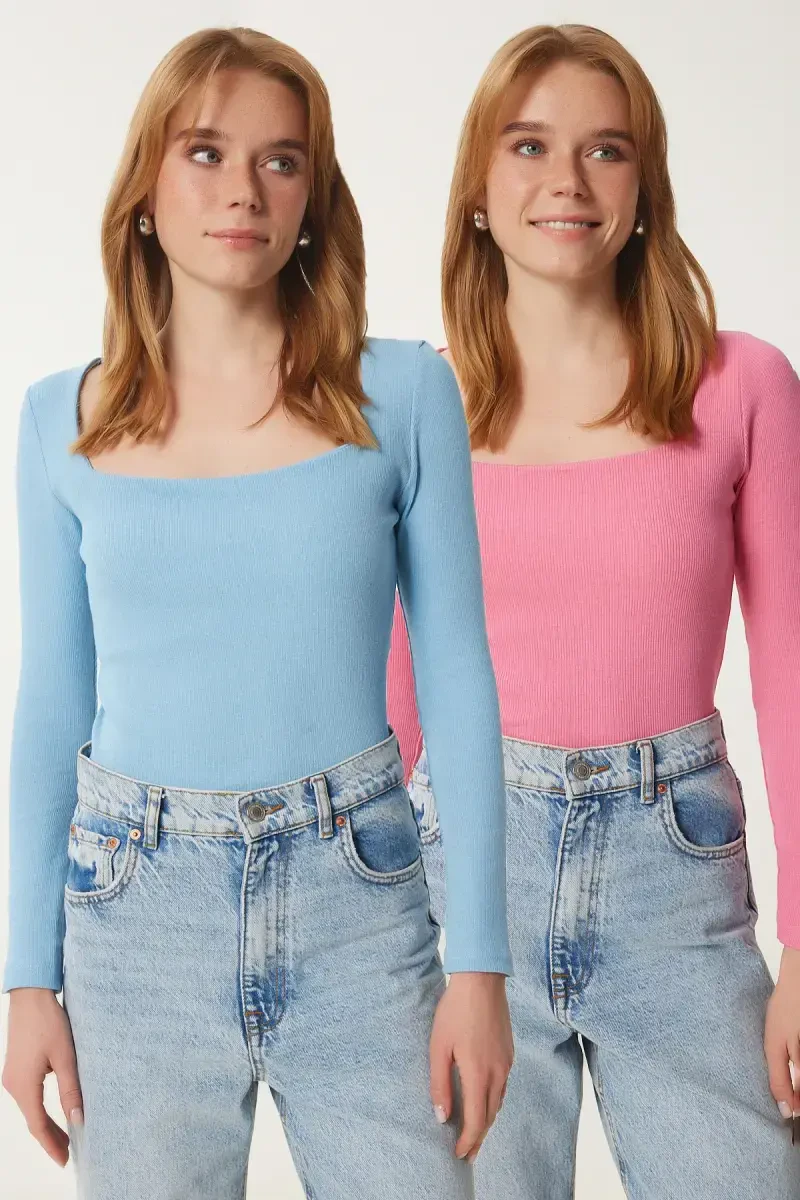 Women's Sky Blue Pink Square Neck 2-Piece Pack Knitted Blouse GT00056-Sky Blue Pink is a candidate to be one of the indispensable pieces of your wardrobe! These stylish and comfortable blouses are a perfect option for both your daily use and special moments. Made of high quality 100% acrylic material, these blouses provide a soft touch to your skin and guarantee you to feel comfortable all day long. The knitted texture adds an elegant and modern touch to the blouses, while the square neck detail highlights your elegance. Thanks to its long-sleeved design, you can easily use it in cool weather. Its standard fit helps you achieve a perfect look by adapting to every body type. The harmony of sky blue and pink colors adds vitality to your combinations and ensures that you are always eye-catching. This 2-piece pack offers you the freedom to make different combinations while protecting your budget. Whether you get a sporty look with jeans or create a more stylish style with skirts, these blouses will always complement your style. These blouses, which will be indispensable for your wardrobe in spring and summer, offer both comfort and elegance together. Reflect your energy with the vibrancy of sky blue and pink colors. Achieve a modern and elegant look with the square neck detail. Enjoy comfort all day long thanks to the 100% acrylic material. Create different combinations with the 2-piece pack advantage. Adapt to every body type thanks to its standard fit. Keep your style in cool weather with its long-sleeved design. It is an ideal choice for daily use and special moments. Create a different and modern style with knitted texture. These blouses will not only look stylish, but also make you feel good. You can be sure that it will be one of the most loved pieces of your wardrobe. Let your style speak with Women's Sky Blue Pink Square Neck 2-Piece Pack Knitted Blouse GT00056-Sky Blue Pink!