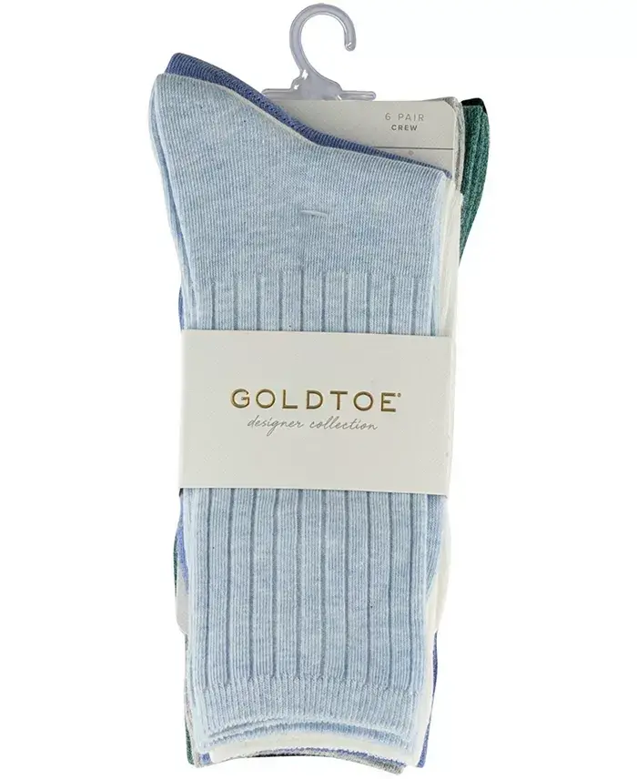 Pair these classic, cushioned socks by Gold Toe with athletic shoes for maximum comfort. Come in a pack of six. Lightweight True fit heel Reinforced gold toe for durability Ribbed crew Cotton, polyester, spandex, nylon Machine wash Imported