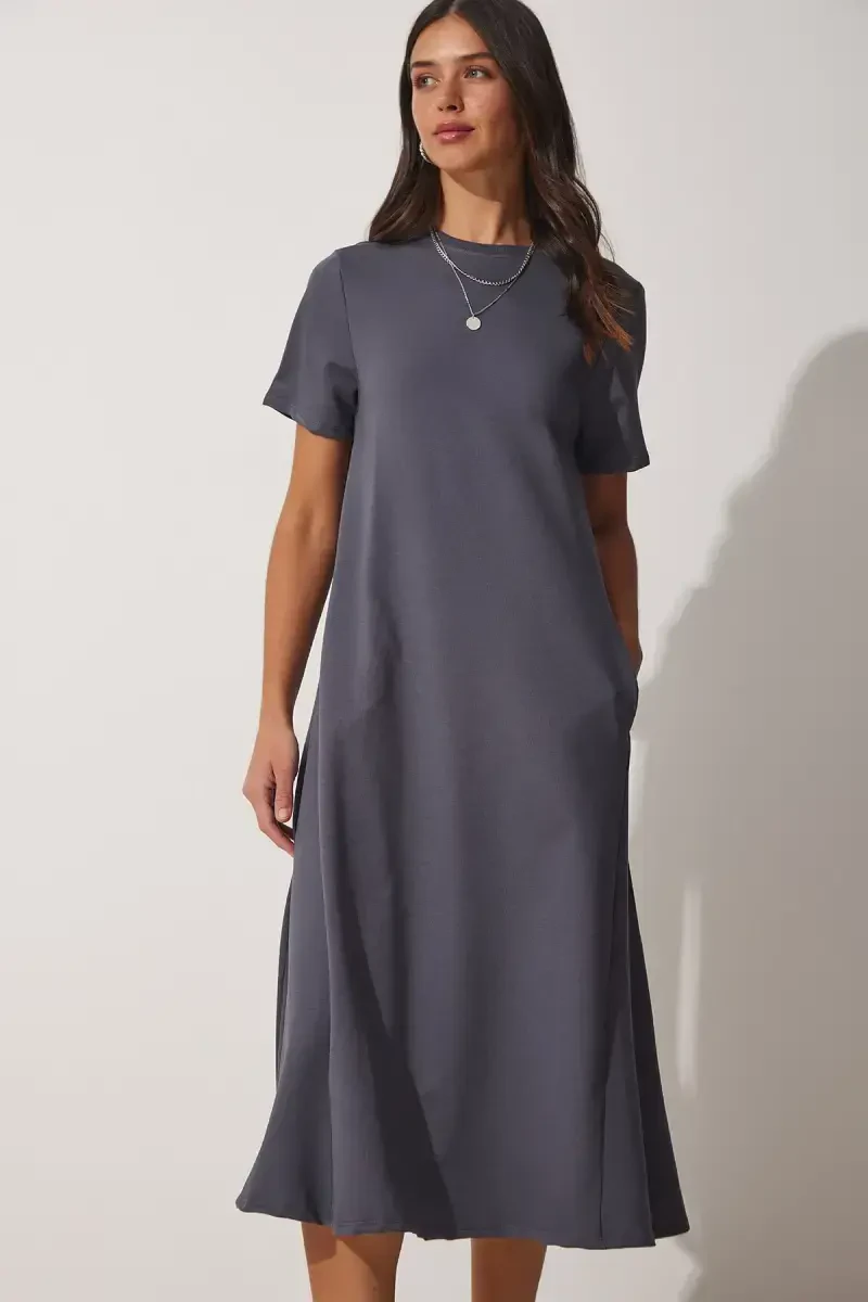 Women's Anthracite A-Line Summer Knitted Dress UB00060-Anthracite is a candidate to be an indispensable part of your summer wardrobe with its comfortable and stylish design that appeals to all age groups. Ideal for daily use, this dress offers a simple and modern look with its standard sleeve and crew neck details. Its material, consisting of 78% cotton, 16% polyester and 6% elastane, provides a comfortable wearing experience all day long. The breathable structure of the fabric helps you stay cool in hot weather, while the elastane content does not restrict your freedom of movement. This dress, which is functional with its pocket details, allows you to create a practical style. You can easily carry your keys, phone or small items. The dress, which offers coolness and comfort in summer with its plain pattern and thin structure, provides a light and airy experience thanks to its sleeveless arm length. Designed with the simplicity of the Basic collection, this piece easily adapts to any environment. You can easily use it in a casual combination with sneakers or in a more special event with stylish sandals. The woven fabric type increases durability and offers long-lasting use. With its midi length, it can be easily preferred both in daily and special occasions. Thanks to its A-line silhouette, it gently wraps your body lines and creates a feminine stance. This cut also supports your freedom of movement. With proper care in accordance with the washing instructions, you can maintain the form of your dress and ensure long-lasting use. This special design offered with Trendyol assurance offers a great opportunity to renew your wardrobe now with its discounted price. Don't miss this limited edition product!