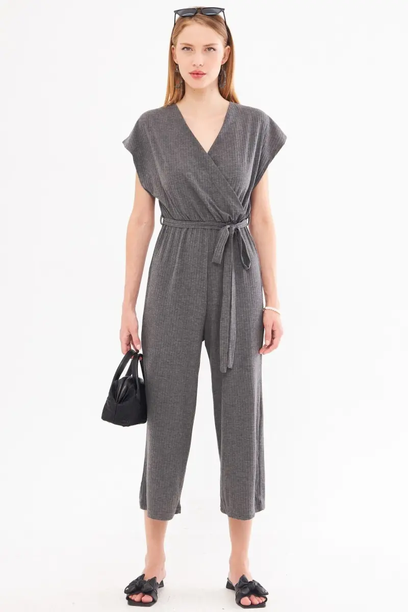 The Women's Anthracite Crossover Belted Jumpsuit ARM-20Y042008-Anthracite is a special piece meticulously designed by ARMONİKA, offering a modern and stylish look. This jumpsuit attracts attention with its angel sleeve design and provides comfortable movement all day long thanks to its short sleeve structure. It is a candidate to be an indispensable part of your wardrobe with its wide range of use that appeals to all age groups. The material composition of 85% polyester and 15% lycra increases the durability and flexibility of the jumpsuit, while the viscose material offers a soft touch and comfortable use. This jumpsuit, which provides a comfortable fit that does not wrap around the body with its relaxed fit, is long-lasting and maintains its shape thanks to its woven fabric type. The belt detail at the waist gently wraps the body lines, creating a feminine silhouette. It is designed to be the choice of those who prefer simplicity with its plain pattern. The crossover silhouette adds a modern and trendy look, while the mini length emphasizes a young and dynamic style. Ideal for daily use in casual environments, this jumpsuit offers both comfort and elegance. Produced with Armonika quality, this jumpsuit can be easily combined with other pieces in your wardrobe. You can reflect your style by combining it with heels for a stylish dinner or with sandals for daily use. This product may be offered for sale by more than one seller. Sellers are listed according to the price they determine for the product, seller scores, delivery statuses, promotions in the products, whether the cargo is free or not, whether the products can be delivered with fast delivery, and information on the stock and categories of the products. Remember, you can order a maximum of 10 of this product. Trendyol reserves the right to cancel orders over 10 units. This limit is not valid for corporate orders, and different limits may be set for corporate orders. If you do not like the product, you can return it free of charge within 15 days.