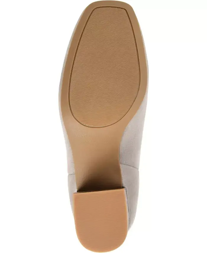 A basic classic by Journee Collection, the Audrina bootie. A lofty block heel adds a leg-lengthening lift, and soft faux suede shapes this versatile square-toe silhouette. Their back zipper entry makes them easy to slip on. Heel height - 3" stacked Shoe width - medium Zipper closure Toe style - square Faux Leather - Polyester, Polyurethane Spot Clean Imported