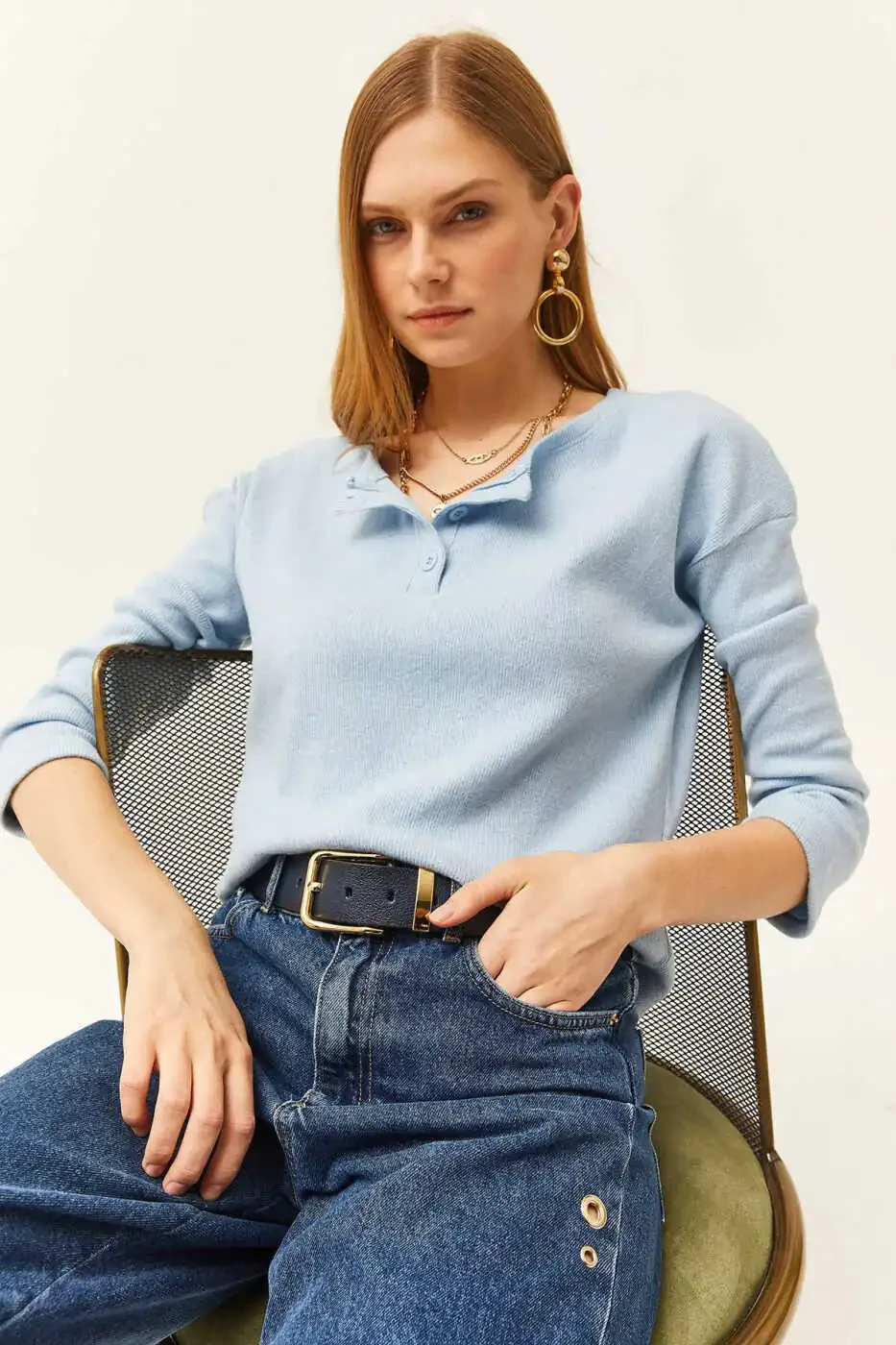 Women's sweater, blue sweater, buttoned sweater, thistle sweater, loose sweater, baby blue sweater, trendyol sweater