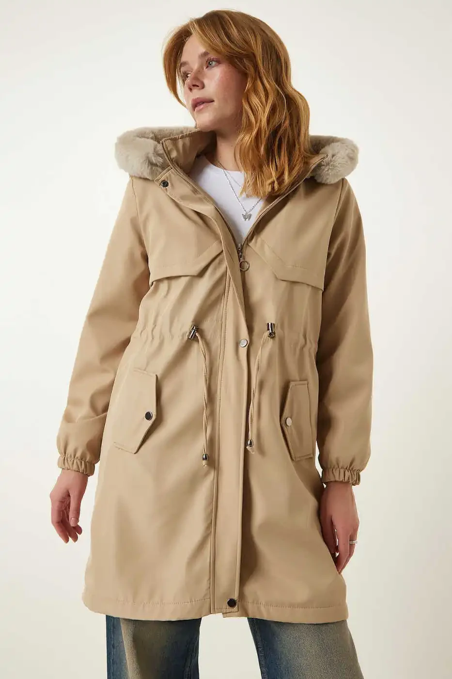 Meet the Women's Beige Hooded Fur Coat DD01292, designed to keep you warm and comfortable without compromising your style on cold winter days! With its elegant beige color and stylish design, this coat complements any outfit. Made from high-quality materials, it's built for long-lasting durability. Its soft and fluffy fur hood protects you from cold winds and rain while maintaining a chic and modern look. Ideal for everyday use, this coat will keep you warm and stylish at work, meeting friends, or on weekend outings. With its quality stitching and robust construction, the DD01292 will be a staple in your wardrobe for years to come. The neutral and elegant beige color allows for easy combination with clothes of different colors and styles. Both stylish and functional, this coat will satisfy you with its warmth and eye-catching design during the winter months. Its comfortable cut offers a comfortable experience without restricting your freedom of movement throughout the day. Available with natural and faux fur options, this coat allows you to choose the style that suits your taste and preference. The Women's Beige Hooded Fur Coat DD01292 is the perfect choice for those seeking quality, style, and comfort, keeping you stylish and warm even in the harsh conditions of winter. Protect yourself from the cold and wind, and enjoy a stylish and warm winter without sacrificing your style!
