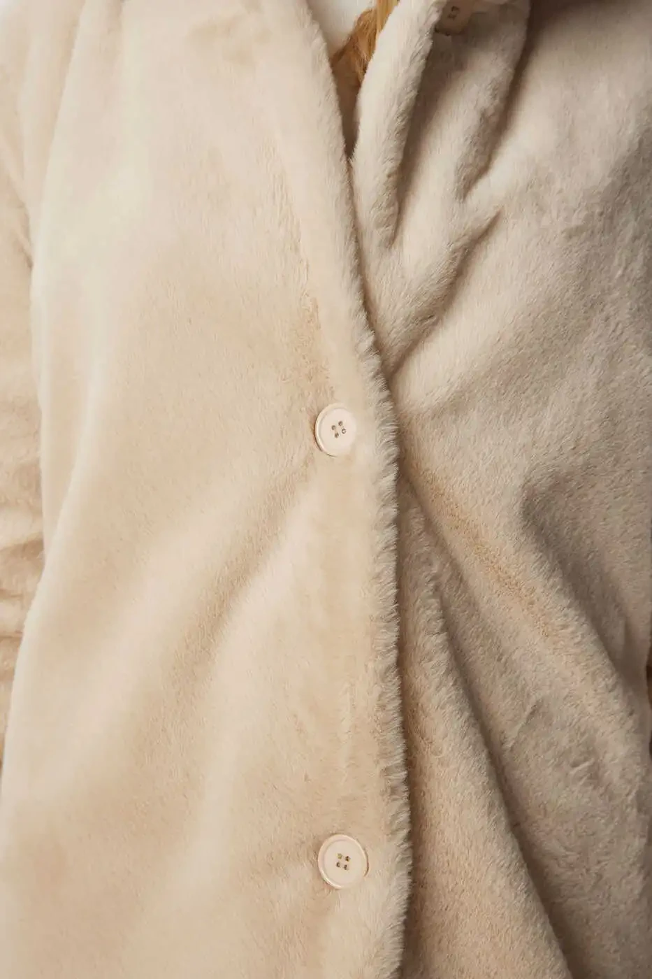 The Women's Beige Hooded Oversize Furry Plush Coat RV00148 is offered to you with the assurance of Trendyol. This special design will be indispensable for cold winter days by offering both elegance and comfort at the same time. The product can be ordered within the specified limits and offers a free return option within 15 days. You can review the return conditions for detailed information. This coat, which offers durable and long-lasting use thanks to its woven fabric, allows comfortable movement with its standard sleeve design. While the hooded collar type protects the head and neck area in cold weather, the long sleeve design wraps your arms completely, keeping them warm. The material composition, consisting of 90% polyester and 10% elastane, offers flexibility and softness. Pocket details provide both functional storage areas and a stylish look. This coat, which is ideal for daily use with its casual style, adapts to every environment and appeals to all age groups. It can be easily cleaned and is practical to maintain according to Type 2 washing instructions. The plush weave type offers a comfortable experience with its soft texture, while the lined structure provides extra warmth and comfort. It creates a timeless elegance with its plain pattern. This coat will be the most popular piece of your wardrobe! Hurry up to have this unique product with the advantages offered by Trendyol! Our stocks are limited and campaign prices are valid for a short time. We recommend that you carefully review seller ratings, delivery times, and product descriptions before making your purchase. We wish you pleasant shopping!