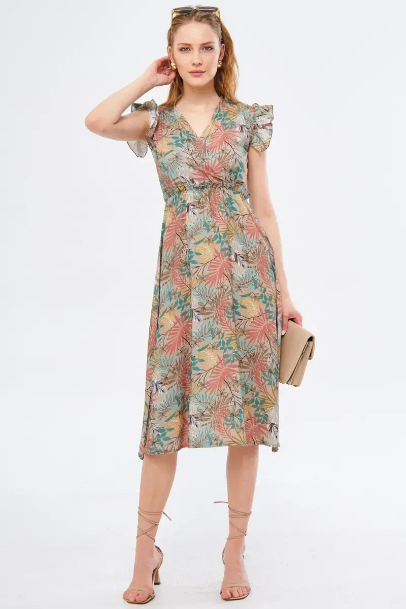 Armonika Women's Beige Midi Dress is a special design that combines elegance and comfort and should be in every wardrobe. It offers a modern touch with its wrap-over collar detail, while the ruffle details on the shoulders add a feminine touch. The elasticated waist provides comfortable use throughout the day, while the midi length makes it easy to choose both in daily life and at special occasions. The elegance of beige color helps you to easily complete your style by adapting to all kinds of combinations. This dress is a timeless piece that will appeal to women of all age groups. This dress, offered with the model code ARM-24Y001020-Bej, reflects Armonika's unique design approach. Whether you get a stylish look with high heels or create a more casual style with sandals, this dress will accompany you in any case. Thanks to its 100% viscose fabric, the dress has a light and breathable structure, keeping you cool in summer and easily wearable in spring. Its A-line cut creates a pleasant silhouette by elegantly emphasizing body lines. Standard sleeve design does not restrict your freedom of movement and allows you to be comfortable throughout the day. This stylish and useful dress is a candidate to be one of the most favorite pieces of your wardrobe. Armonika Women's Beige Midi Dress, the choice of women who want to be both stylish and comfortable, will add elegance to your style.
