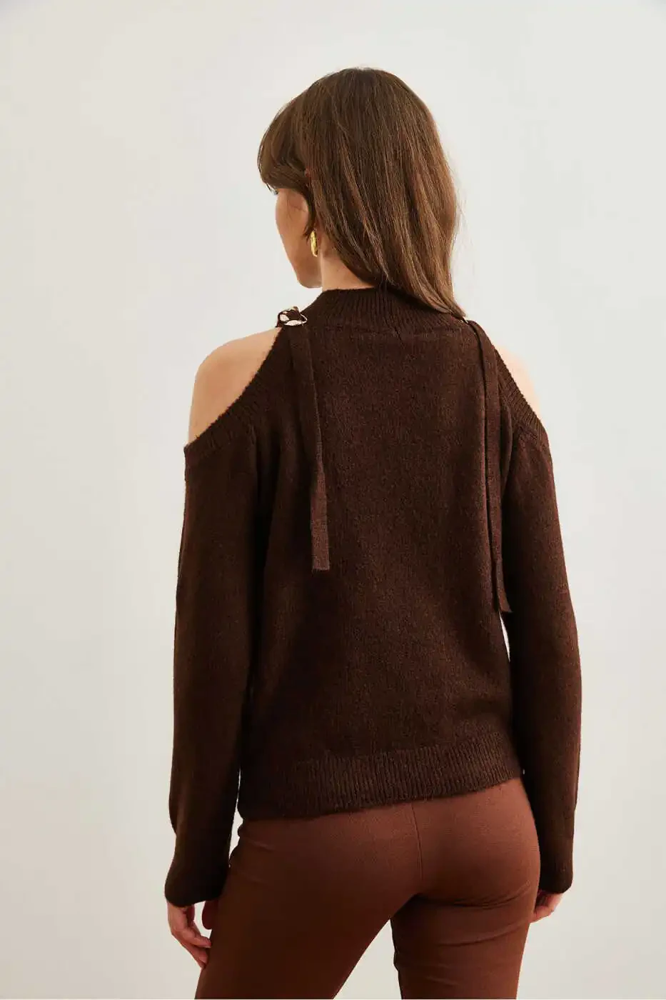 Women's Bitter Coffee Knitted Sweater | Soft Textured | Thick Chain Details