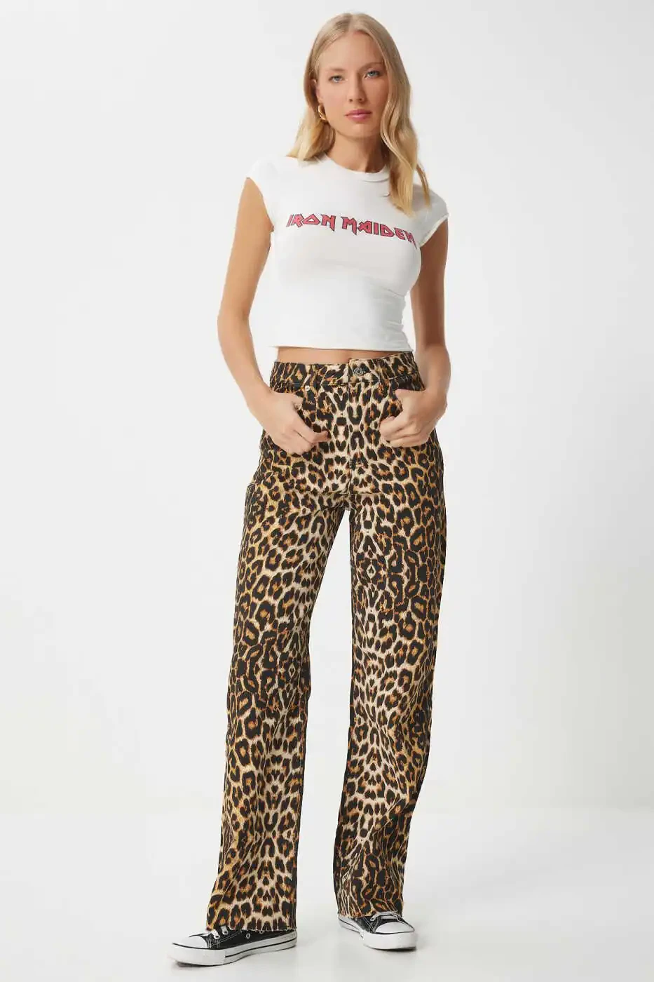 Meet the Women's Black Beige Leopard Print Straight Jeans RH00029, combining style and comfort! These eye-catching jeans offer a unique style by blending the chicness of the leopard print with the elegance of the black and beige color combination. The high-waisted design creates a modern look while perfectly hugging your body to help you create a flawless silhouette. Its lyrca-free construction provides all-day comfort, while the 5-pocket design offers practical use. This product, shipped by Trendyol, has limited stock available at a campaign price. Made from natural cotton fabric, these jeans will allow you to experience comfort and style simultaneously. Minor color variations may occur due to lighting differences in studio shots. You can choose the most suitable size by examining the product measurements and maximize your shopping experience. You can also buy with peace of mind with a 15-day free return option. Add this amazing pair of jeans to your wardrobe, add a new dimension to your style, and draw all eyes to you!