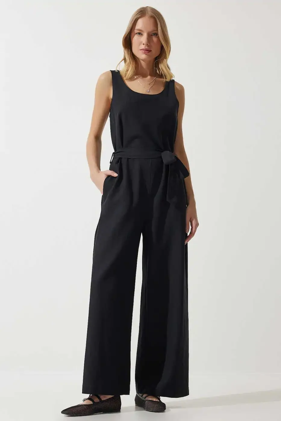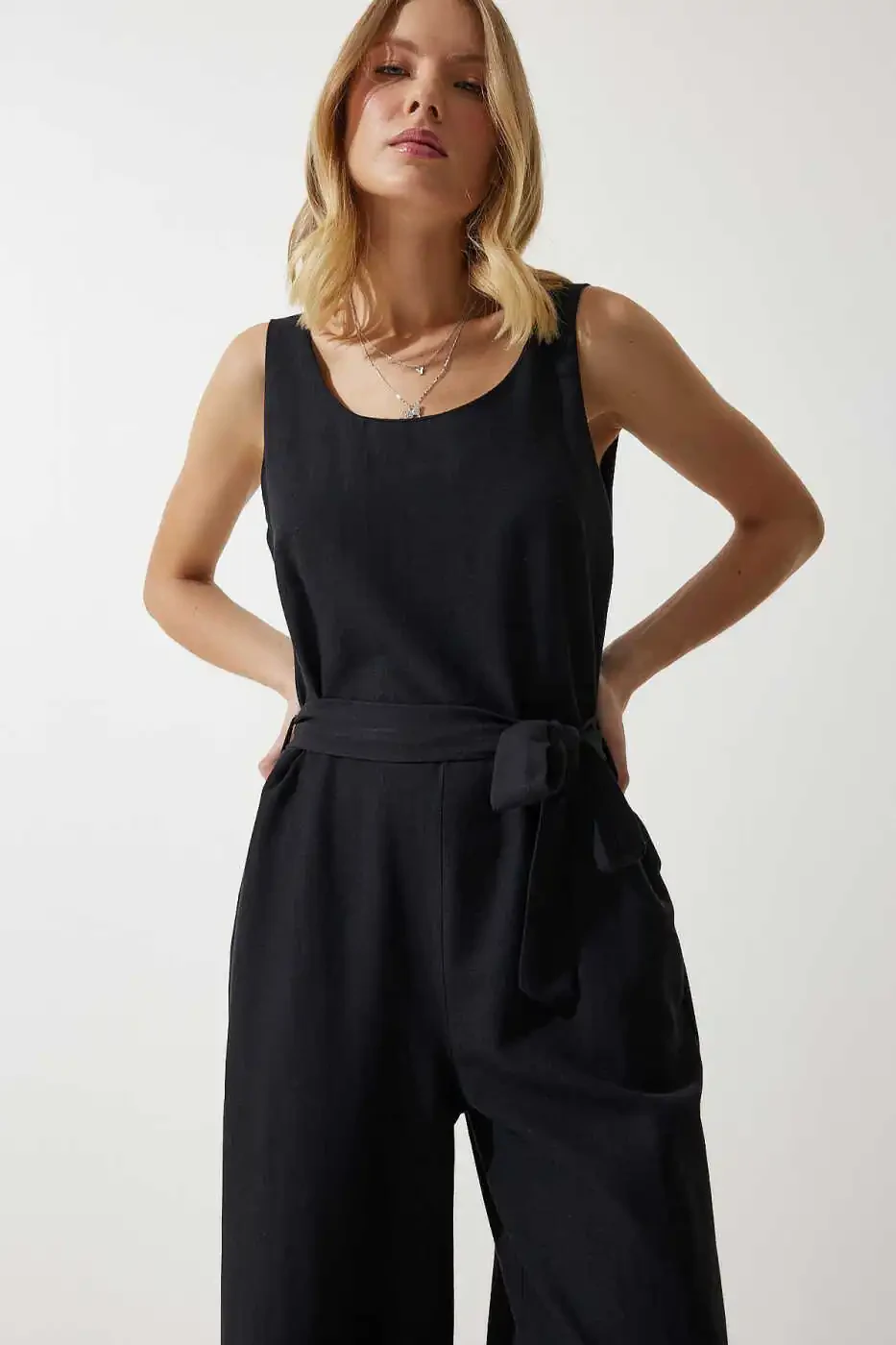 Designed for modern women who seek both elegance and comfort, the Women's Black Belted Linen Jumpsuit MC00282 is set to become a staple in your everyday wardrobe. Standing out with its timeless design and practical features, this jumpsuit appeals to women of all ages. The elegance of black and the natural texture of linen fabric make this jumpsuit a piece you can choose for both daily life and special occasions. The jumpsuit, which can be easily put on and taken off thanks to its zippered closure system, provides a perfect fit with its belt detail that emphasizes your waist and the sash detail that you can adjust according to your personal taste. Its regular fit offers a structure that hugs your body lines without tightening, ensuring you feel comfortable all day long. Its plain pattern creates a simple and stylish look, while also offering the freedom to combine with different accessories. Whether you combine it with sneakers or heels, you will always look stylish and fashionable. The durable woven linen fabric offers long-term use, while its soft texture guarantees your comfort throughout the day. When cleaned according to Type 1 washing instructions, it will maintain its first-day elegance for many years. This jumpsuit is offered to you with the assurance of Trendyol. Take advantage of the campaign price and order now to avoid missing out on one of the limited stocks! Moreover, you can shop with peace of mind with the free return option within 15 days. With options suitable for every size, it is an ideal choice for women who care about their style and comfort. Feel special with this product and dazzle with your elegance at all times. Remember, elegance and comfort are now together!