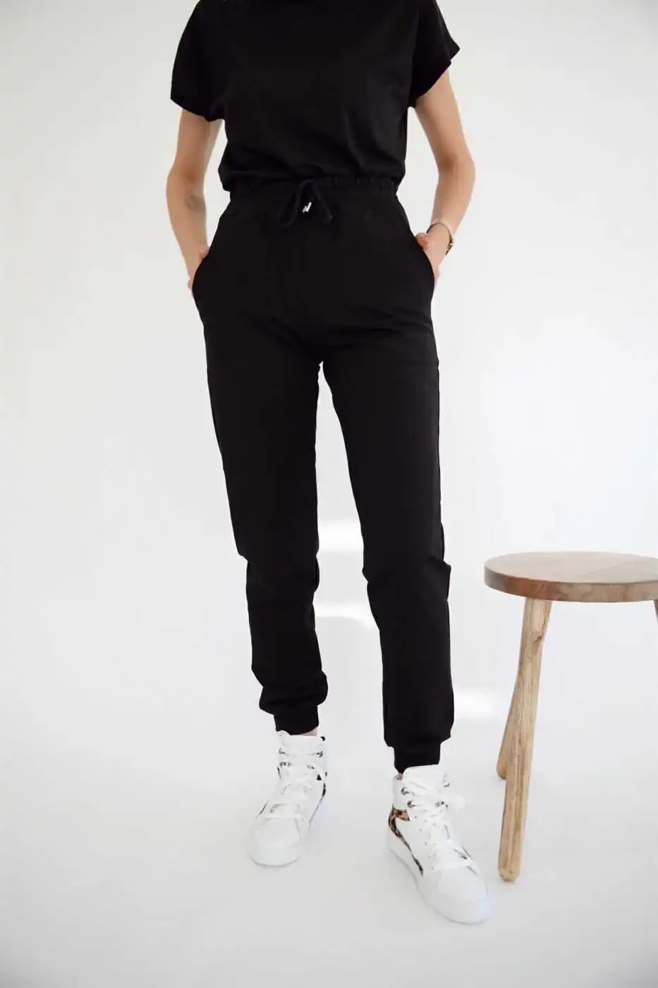 The Women's Black Cuffed Sweatpants, with their high-quality fabric and stylish design, will become an indispensable part of your wardrobe. This perfect blend of sport and casual wear is the ideal choice to complete your style.