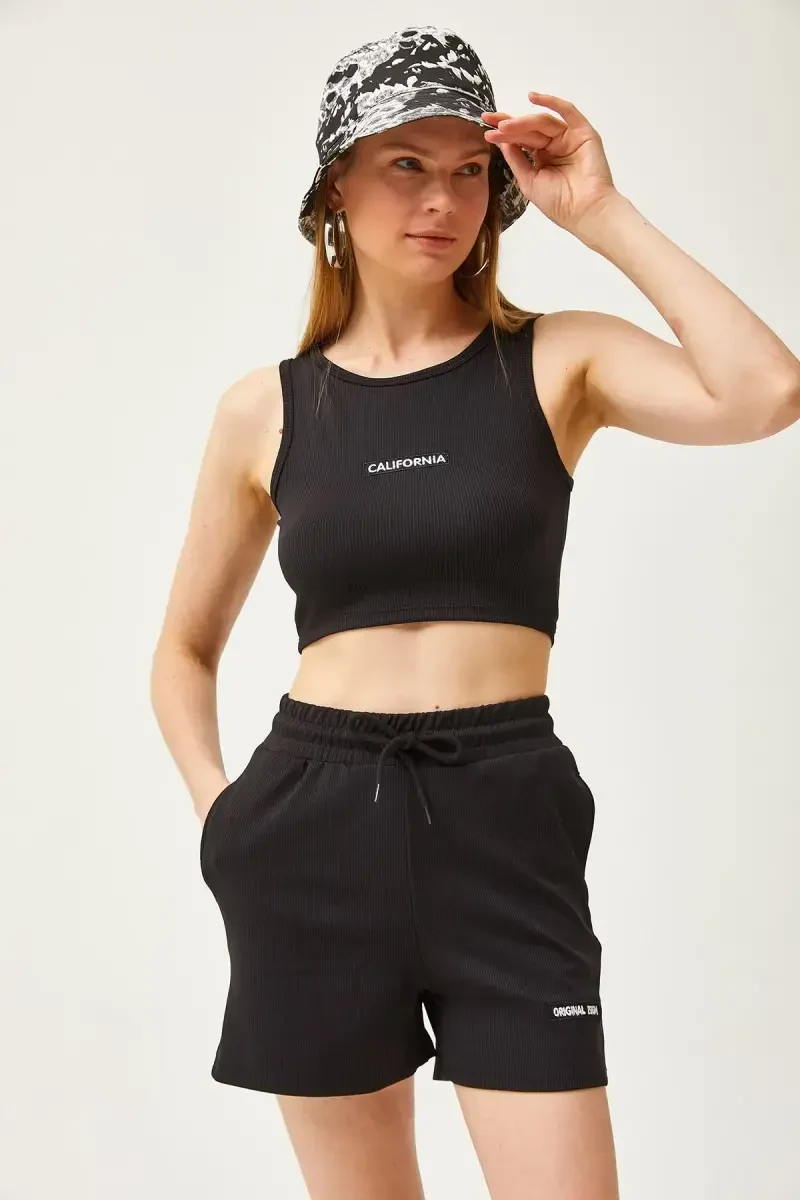 Women's shorts suit, black embroidered suit, lycra shorts, comfortable suit, stylish women's clothing, summer suit, everyday elegance, special design suit, cotton suit, women's fashion