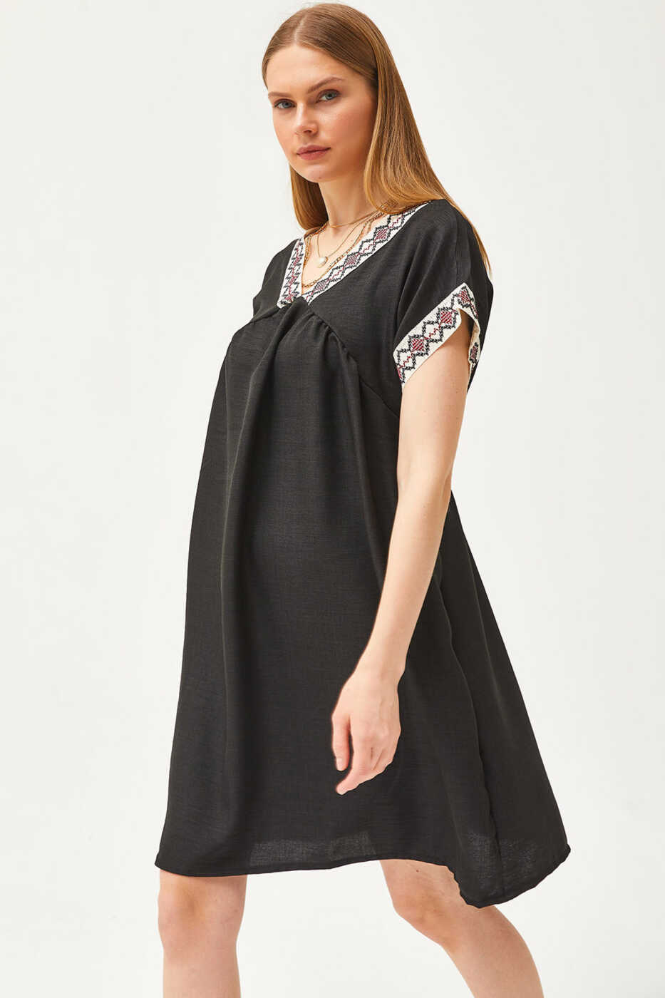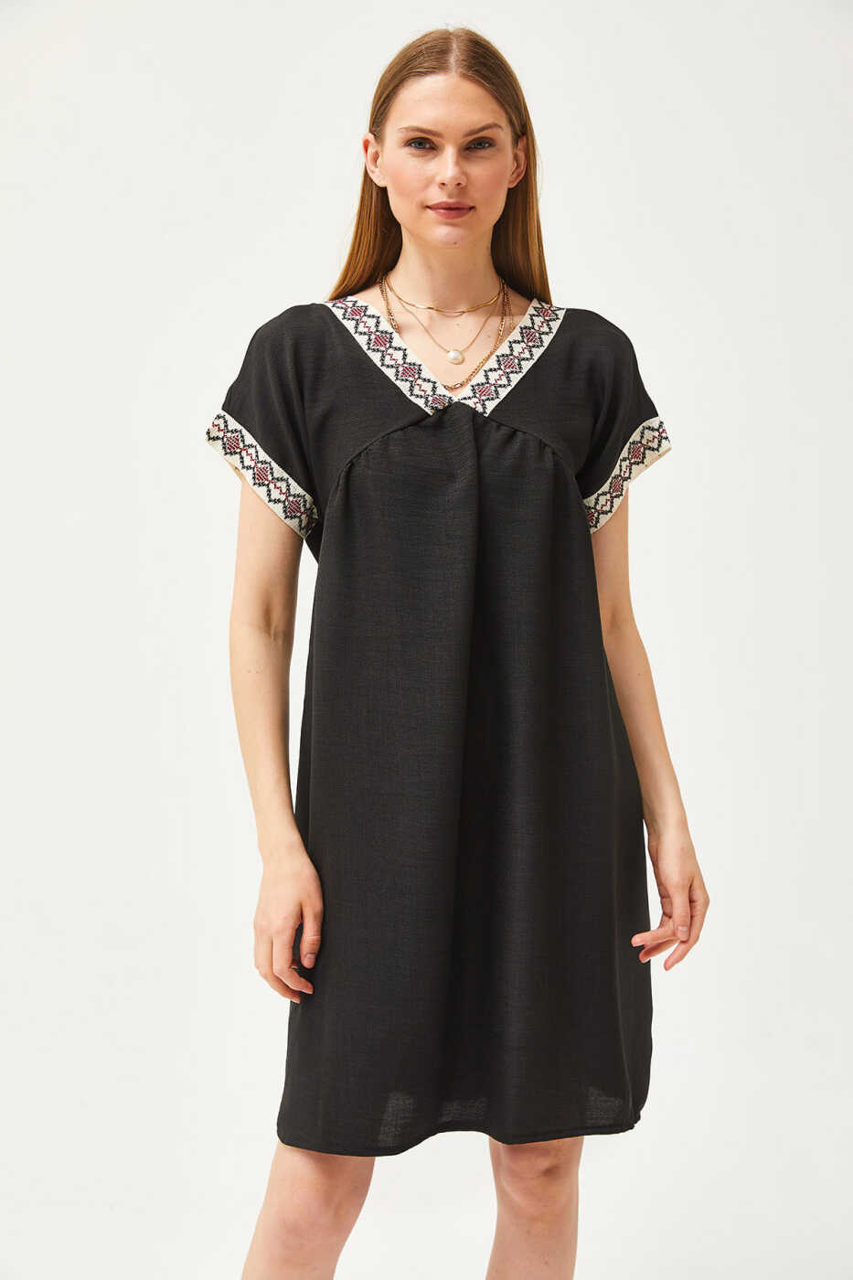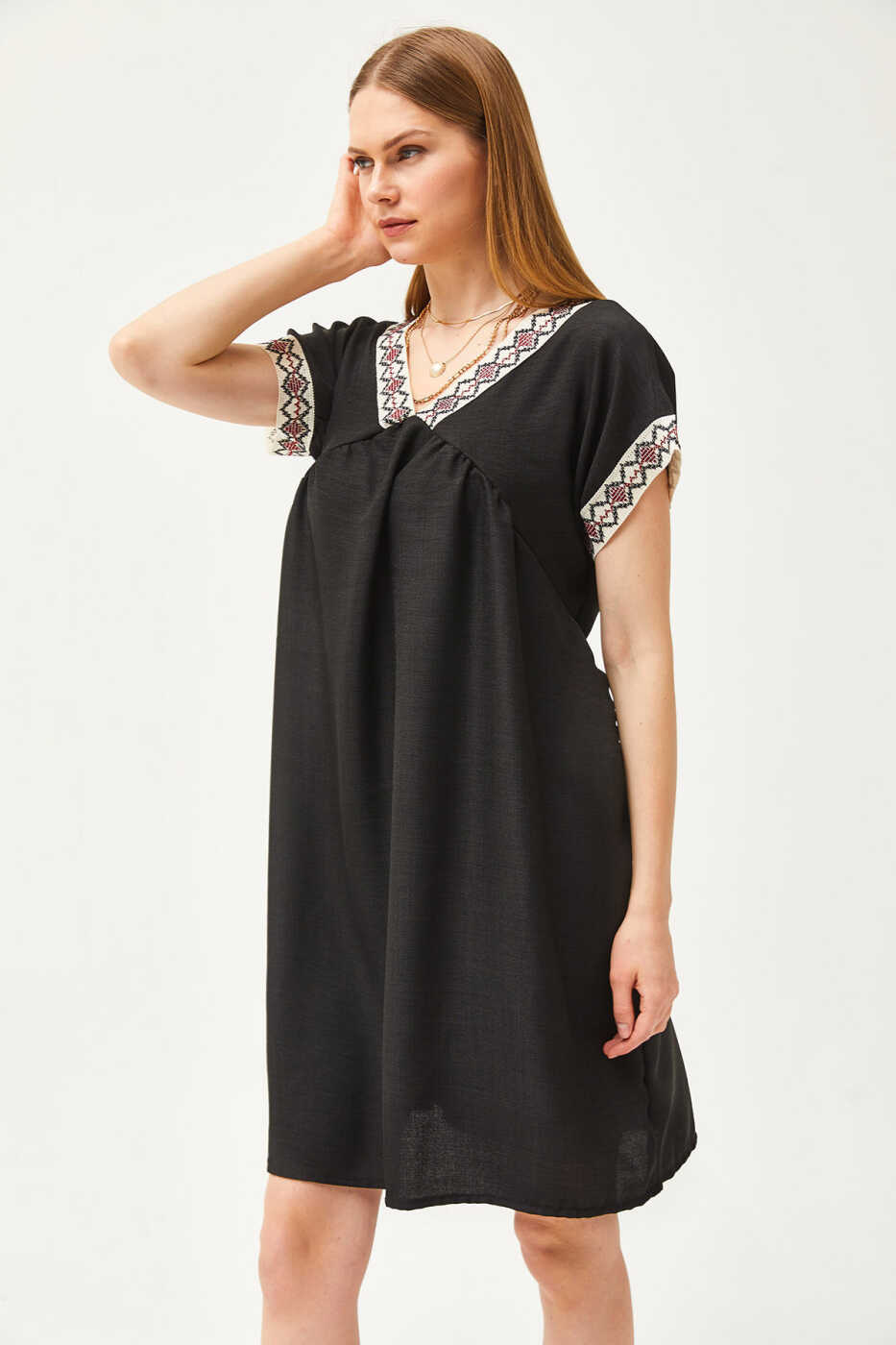Combining style and comfort, the Women's Black Collar Lace Linen Blend Dress is the perfect choice for summer. Made with linen for breathability and coolness, the dress features a delicate lace collar that adds a feminine touch. With its casual, chic and elegant design, you can create a striking look in any setting.