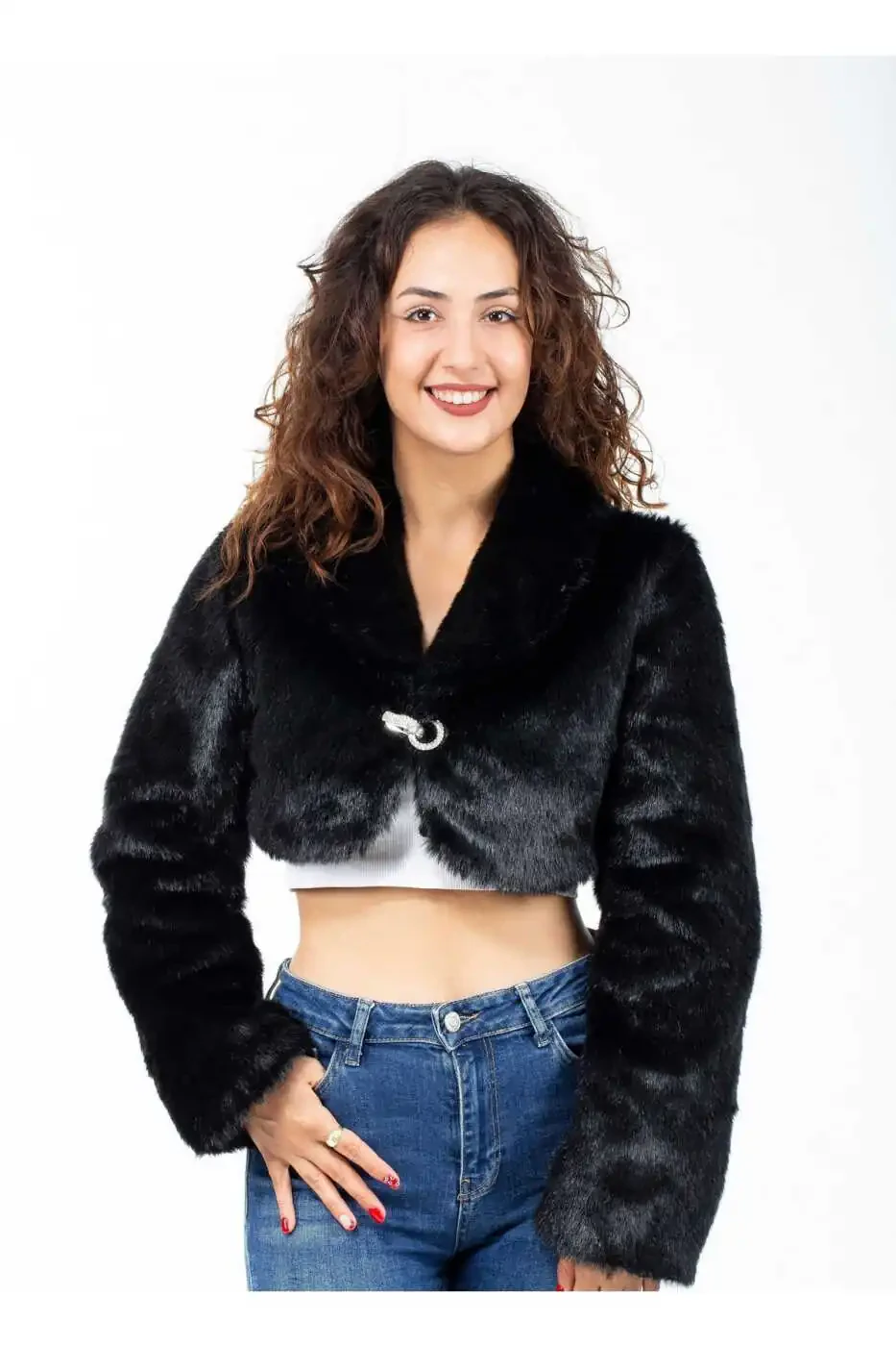 Choose the Women's Black Long Sleeve Fur Bridal Bolero to elevate your elegance and style on special occasions.